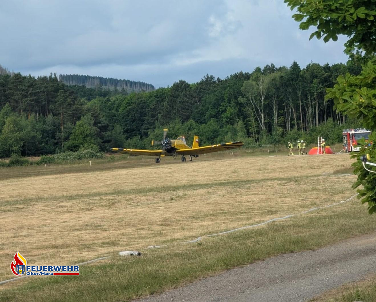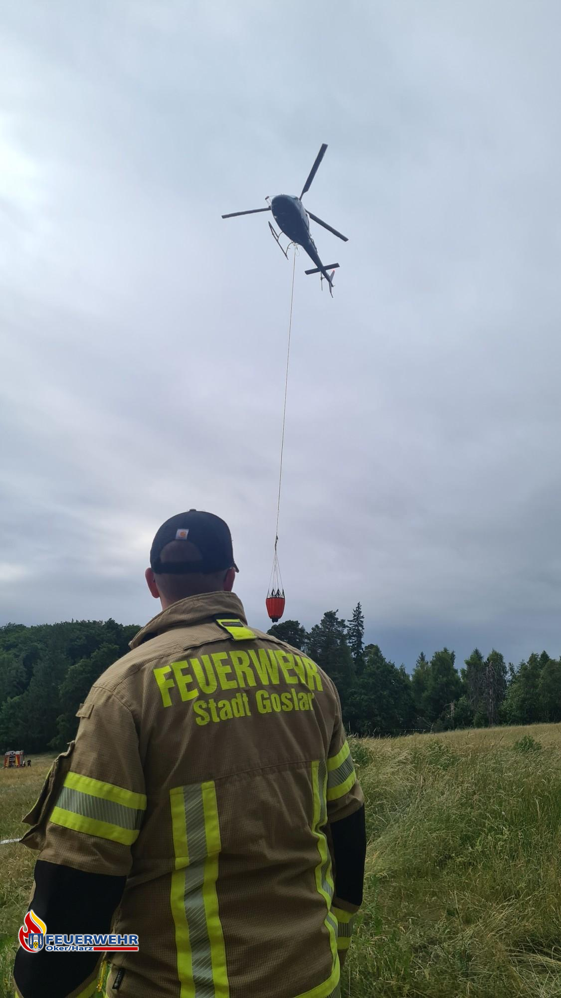 Am Montag unterstützten wir die Feuerwehr Goslar erneut vor Ort. Das UTV kam weiterhin bei der Brandbekämpfung zum Einsatz. Das Löschgruppenfahrzeug stellte den Brandschutz für das Löschflugzeug und den Helikopter sicher, die am Bollrich betankt wurden. Das Tanklöschfahrzeug wurde für den Ringverkehr zum Wassertransport eingesetzt.