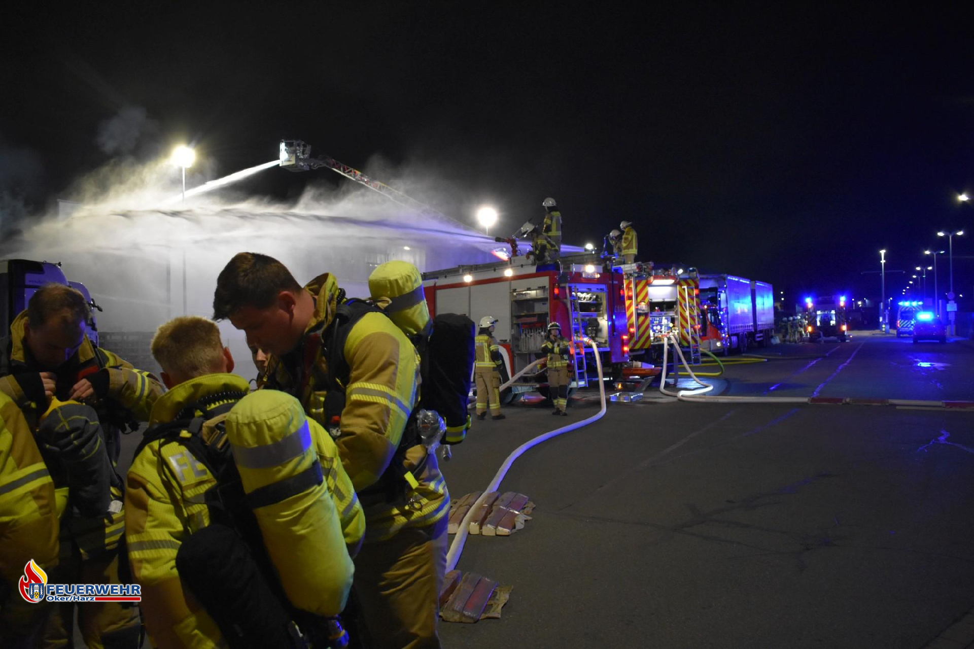 Bereits auf der Anfahrt war eine deutliche Rauch- und Flammenentwicklung sichtbar. Aufgrund der Lage wurde die Alarmstufe erhöht und eine Bevölkerungswarnung herausgegeben.