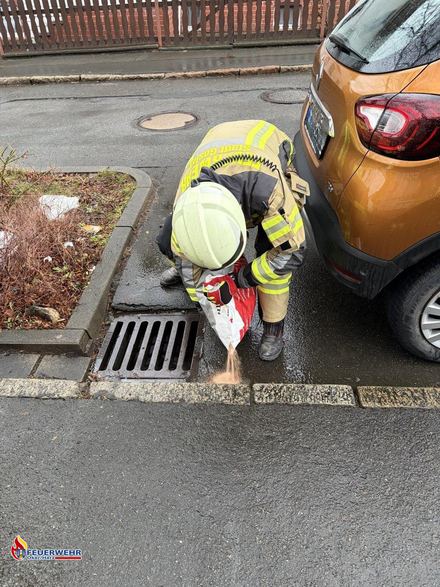Da sich die Ölspur lediglich entlang des Straßenrandes zog, sicherten wir einen Kanaldeckel mit etwas Ölbindemittel und beendeten unseren Einsatz nach 15 Minuten.