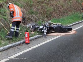 Im Okertal war eine Gruppe Motorradfahrer von der Okertalsperre in Richtung Oker unterwegs. In einer Linkskurve kam ein Fahrer von der Fahrbahn ab und fuhr mit seinem Motorrad gegen den Randstein und verlor dabei die Kontrolle über seine Maschine.