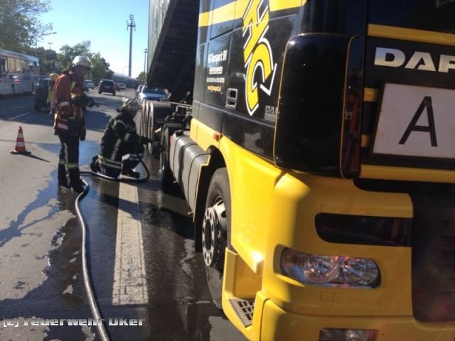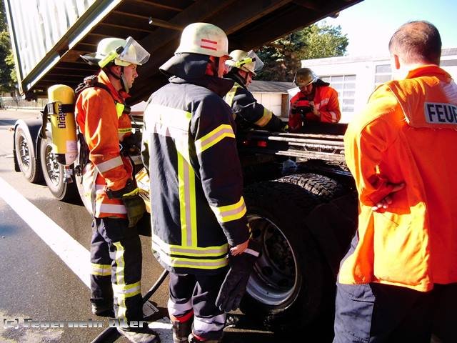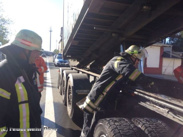 Der Fahrer einer holländischen LKW-Spedition bemerkte während der Fahrt Rauchwolken aus seinem Fahrzeug und alarmierte die Feuerwehr. Gegenüber dem Bahnhofsgelände stand der LKW auf einem Seitenstreifen. Die Erkundung ergab überhitzte Bremsen, die mit circa 1.000 l Wasser unter schwerem Atemschutz gekühlt und mit der Wärmebildkamera überprüft wurden. Die Fahrbahn der B 498 war halbseitig gesperrt.
