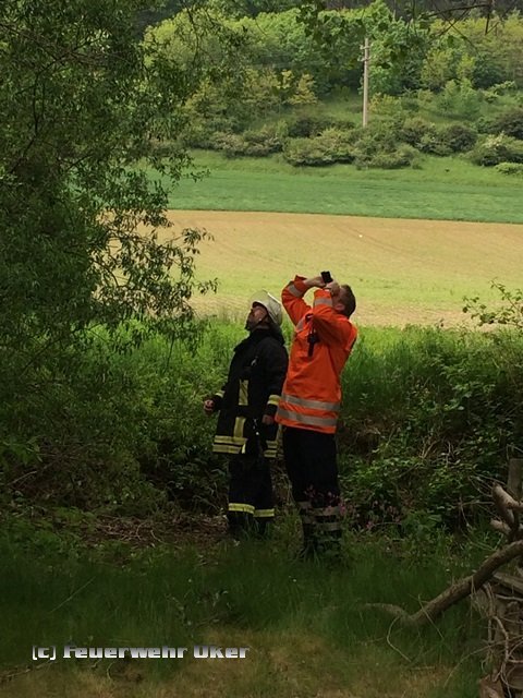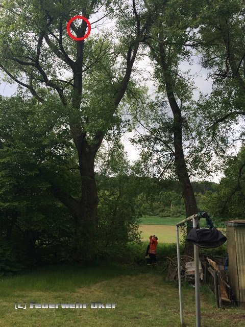 Am Samstagnachmittag hörten Anwohner in der Altdammerstraße jaulende Geräusche aus einem Baum. Hoch im Geäst saß ein Tier, die Anwohner vermuteten eine Katze, scheinbar fest. Da die Feuerwehr Oker, zu dem Zeitpunkt, dabei war ihre jährliche Hydrantenkontrolle durchzuführen wurde der Ortsbrandmeister telefonisch von der Leitstelle über diese Situation in Kentniss gesetzt. Das Löschgruppenfahrzeug 10/6 machte sich auf den Weg zur Einsatzstelle.