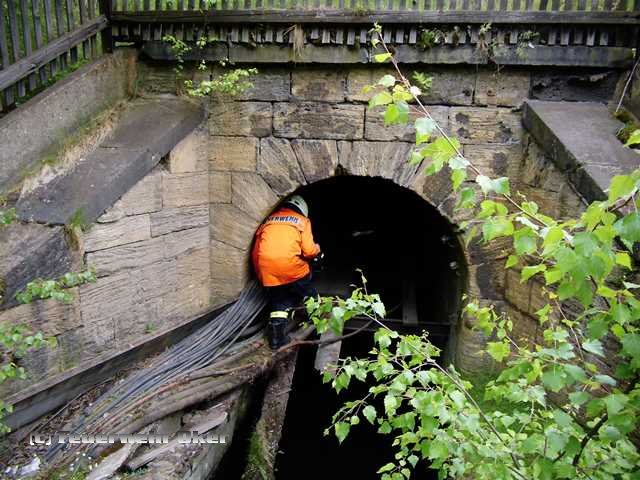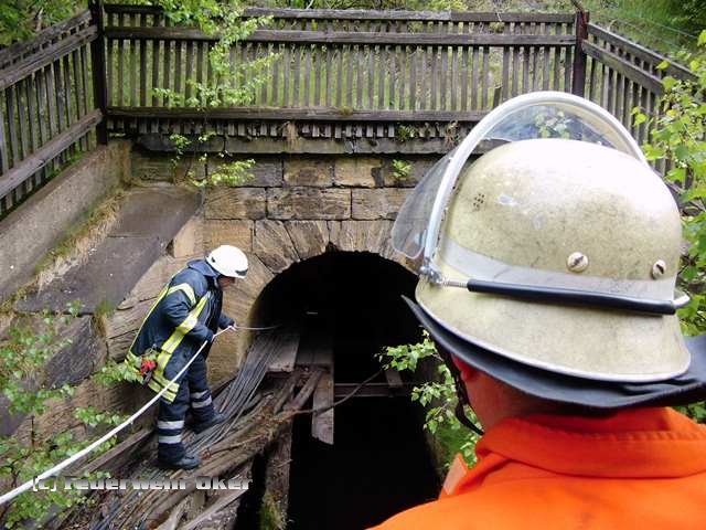 Spaziergänger bemerkten am Samstagnachmittag Brandgeruch und eine leichte Rauchentwicklung aus einem Versorgungstunnel in der Kielschen Straße. Als Sie in den Tunnel hinein schauten konnten sie auch Feuerschein wahrnehmen und alarmierten daraufhin die Feuerwehr. Beim Eintreffen der Ortsfeuerwehr Oker waren die Flammen bereits von selbst erloschen. Durch den Tunnel fließt Brauchwasser eines Industriebetriebes. Des Weiteren verlaufen Stromkabel hindurch. Ein Feuerwehrmann ging mit einer Handleuchte und der Wärmebildkamera in den Tunnel vor und fand die Brandstelle. Hier hatte scheinbar ein Unbekannter versucht die unter Spannung stehenden Kabel zu trennen, denn das Werkzeug lag noch an der Brandstelle. Eine Wärmeentwicklung war an den verschmorten Kabeln nicht mehr auszumachen.