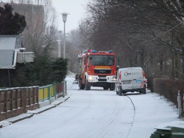 Schreck in der Morgenstunde. Bei Kontrolle eines Kellers stellte der Eigentümer erhebliche Wassermengen fest und alarmierte die Feuerwehr um 8.21 Uhr. Gut einen Meter standen zwei Kellerräume unter Wasser. Mit Tauchpumpe und Wassersauger konnte das Wasser über Schläuche in den Kanalabfluss abgepumpt werden. Vermutlich hatte der Frost bei Temperaturen unter -13 °C die Wasseruhr beschädigt.