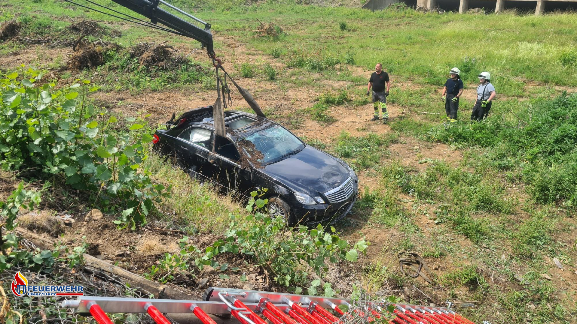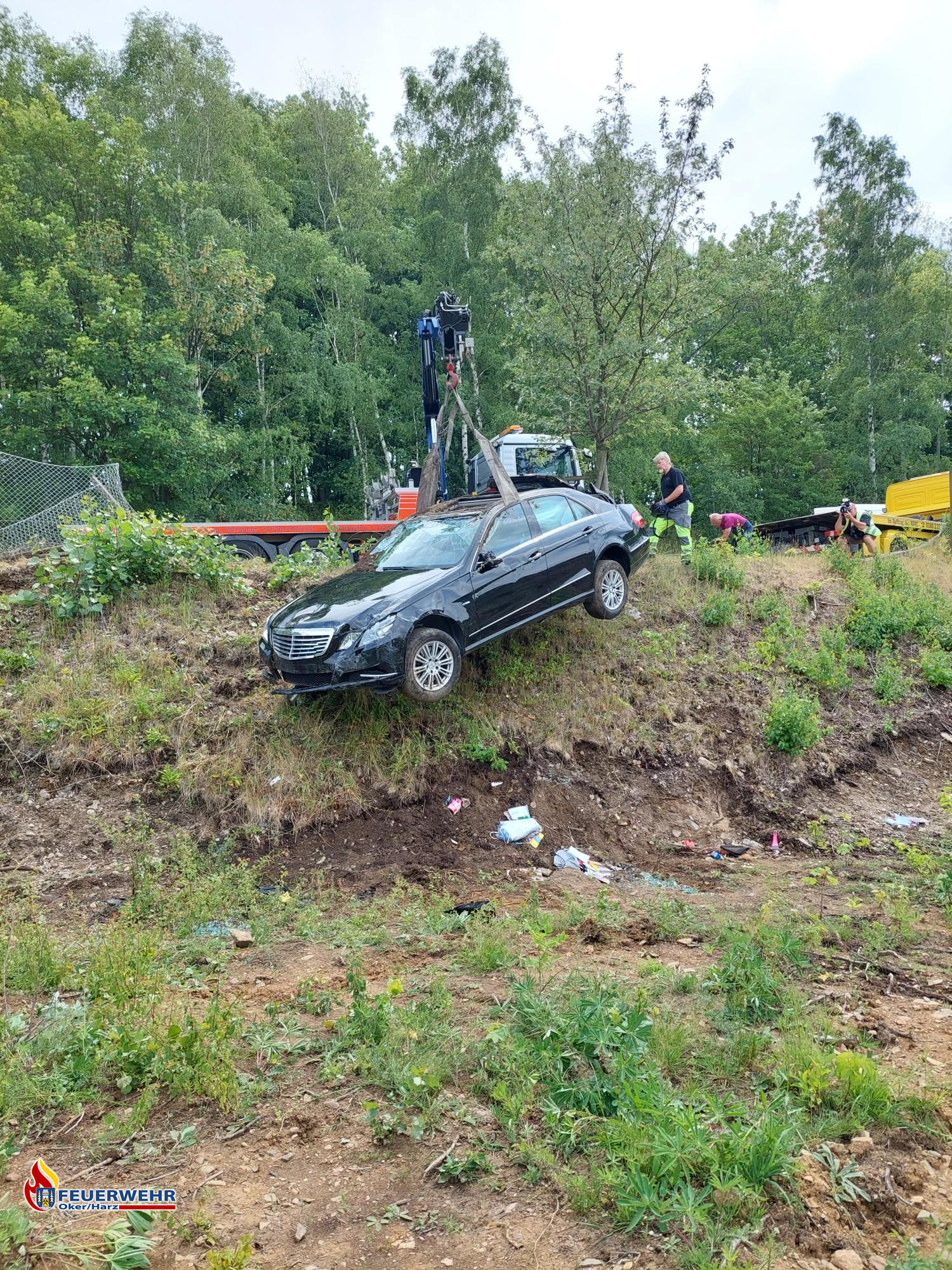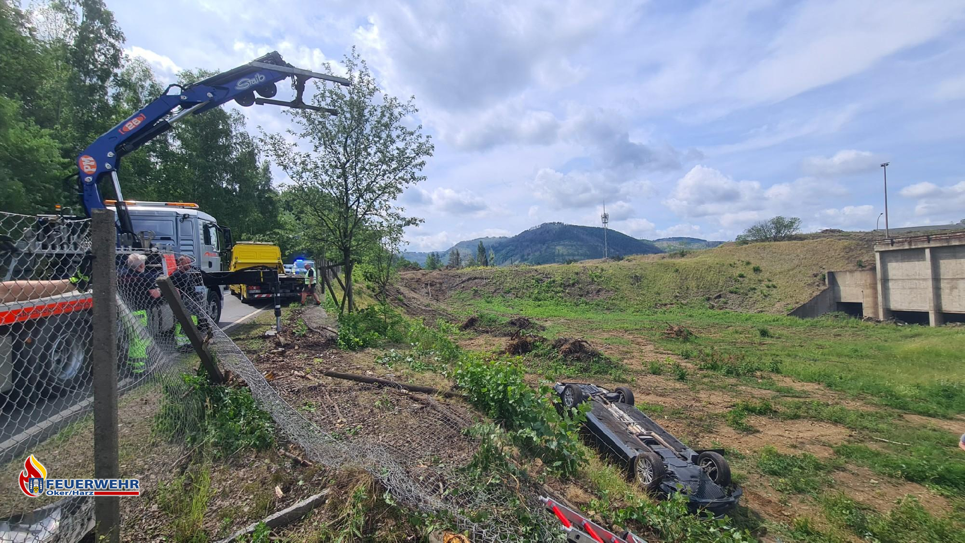 An der Einsatzstelle angekommen, sah unser Ortsbrandmeister Florian Rowold das Ausmaß des Unfalls. Das Fahrzeug ist einen fünf Meter tiefen Hang hinuntergestürzt, überschlug sich und blieb auf dem Dach liegen. Einige Ersthelfer kümmerten sich bereits um die verletzte Person, bis der Rettungsdienst eintraf. Wir stellten den Brandschutz sicher und befreiten schonend den Patienten mithilfe der Feuerwehr Goslar und dem Rettungsdienst.