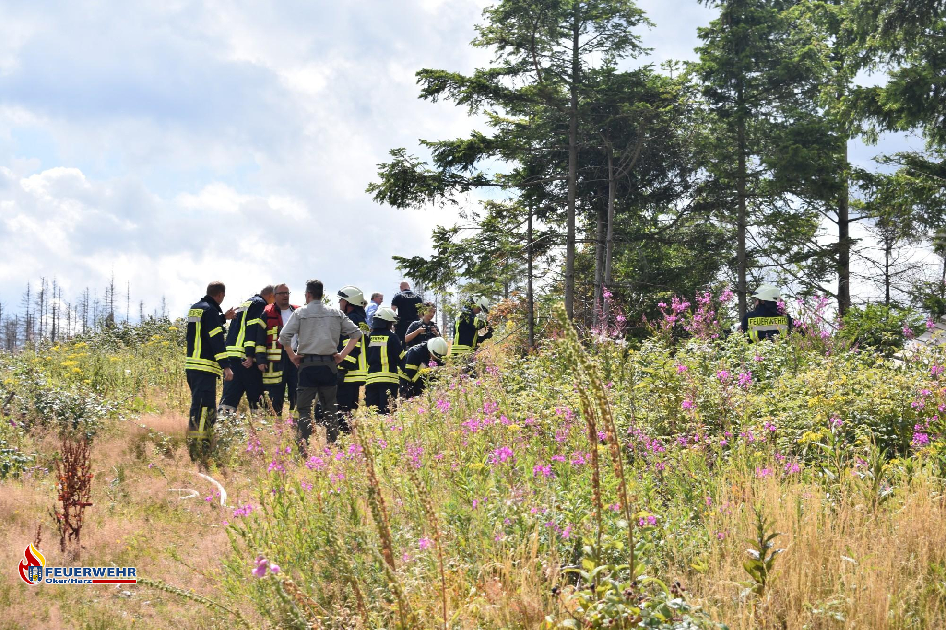 Am Mittwochmittag gegen 13:50 Uhr wurde die Feuerwehr Oker gemeinsam mit der Polizei zu einem Waldbrand auf dem Kahberg alarmiert. Der Mannschaftstransportwagen fuhr mit zwei Führungskräften zum Erkunden vor, die besetzten Löschfahrzeuge blieben zunächst in Bereitschaft in der Wache.