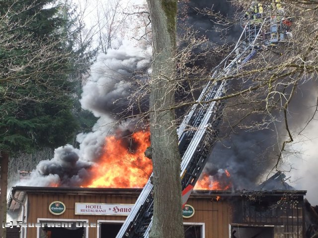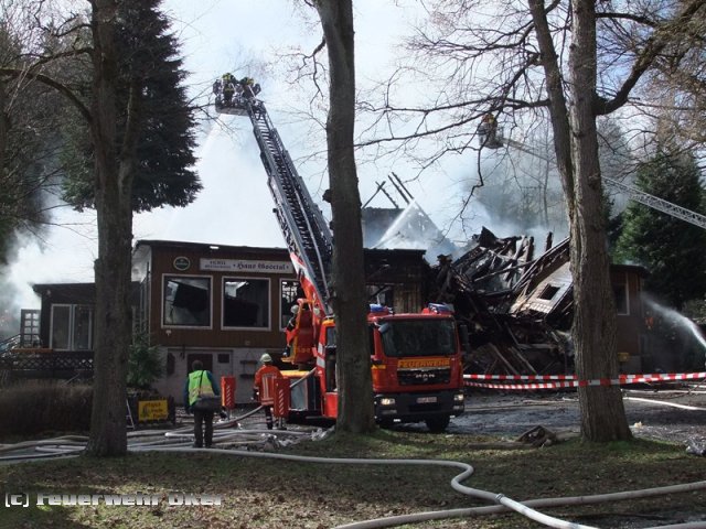 Das Gebäude war nicht mehr zu Retten und wurde ein Raub der Flammen. Die Löscharbeiten zogen sich bis in den Nachmittag hinein. Ein angeforderter Bagger ließ gezielt Gebäudeteile einstürzen, um einem späteren unbeabsichtigten Einsturz vorzubeugen und die Brandnester zu erreichen.