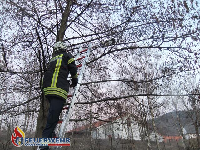 Eine relativ junge Katze unterschätzte am Montagnachmittag wohl ihre Kletterkünste bei einem Spaziergang an der Oker. Fluchs saß das junge Tier in vier Metern Höhe in einem Baum und kam nicht mehr zurück. Gegen halb sechs konnte sie mit lauten Schreien Passanten auf sich aufmerksam machen, die auch umgehend in der Feuerwehreinsatz- und Rettungsleitstelle anriefen.