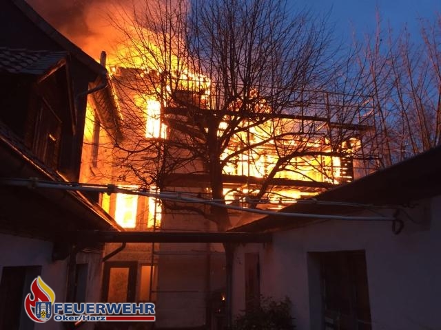 Zu einem Gebäudefeuer in Goslar wurden die okeraner Einsatzkräfte um 16:22 Uhr alarmiert. In der Astfelder Straße ging der Dachstuhl eines Geschäftsgebäudes in Flammen auf. Bei Eintreffen der Einsatzkräfte stand das Gebäude bereits komplett in Flammen.