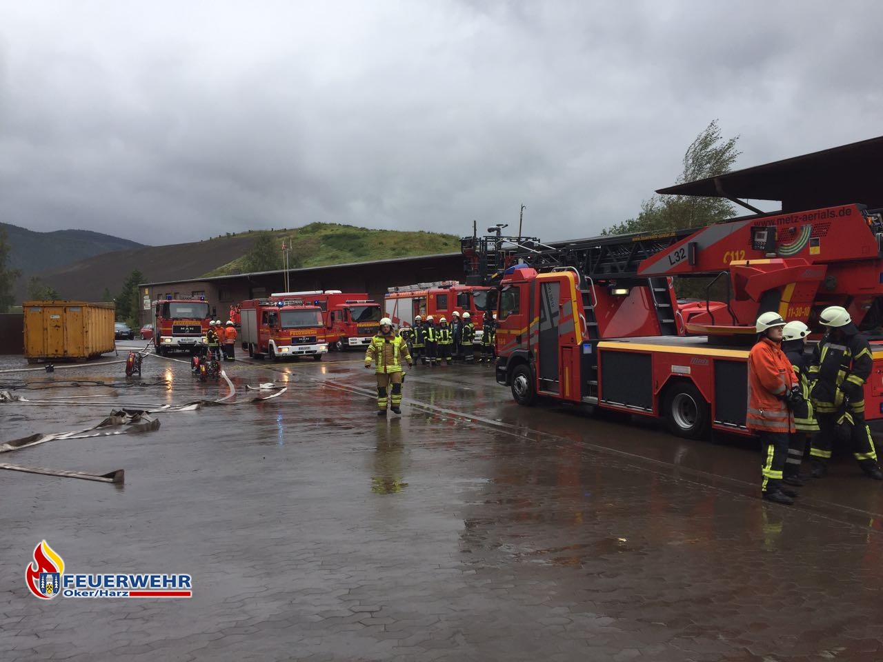 Am Mittwoch Nachmittag wurde bei der Leitstelle ein Lagerhallenbrand bei der Harz Metall zwischen Oker und Harlingerode gemeldet. Zunächst wurden die Feuerwehren Oker und Goslar alarmiert. Noch vor dem Eintreffen an der Einsatzstelle war ein Mangel an Einsatzkräften abzusehen. So wurde entschieden die Feuerwehr Oker ein zweites Mal mit der Sirene zu alarmieren und die Feuerwehr Harlingerode anzufordern.