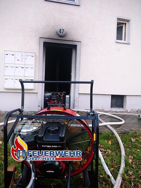 Eine Person wurde über die Drehleiter, der zweite Bewohner mit Hilfe einer Atemschutzmaske über das Treppenhaus gerettet. Sie wurden mit Verdacht auf Rauchgasvergiftung durch den Rettungsdienst in ein Krankenhaus gebracht. Zeitgleich erfolgte die Absuche aller Wohnungen. Weitere Bewohner oder Tiere konnten bei der Absuche nicht festgestellt werden, so dass im Anschluss umgehend die Brandbekämpfung eingeleitet wurde. Mit Hilfe der Wärmebildkamera konnte der Brandherd im Keller schnell lokalisiert werden. Die enorme Hitzeentwicklung hatte bereits im gesamtem Kellerbereich Kabel und Installationen zum Schmelzen gebracht, die somit eine Gefahr für die Einsatzkräfte darstellten. Der Energieversorger wurde daher umgehend hinzugerufen, um Gas und Strom für das Wohngebäude abzustellen. Aufgrund des Personalintensiven Einsatzes entschied die Einsatzleitung Sirenenalarm in Oker auszulösen und weitere Kräfte aus Goslar zu alarmieren.