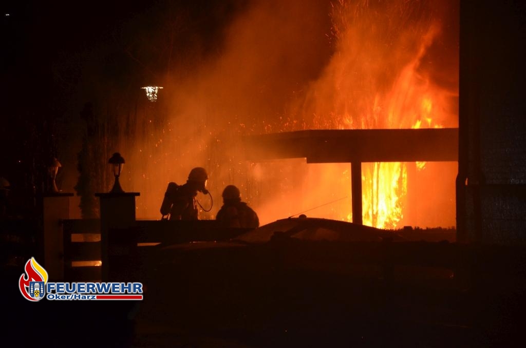 Die Neujahresfeier war für die Okeraner Einsatzkräfte um kurz vor halb eins zu Ende. Im Ammentalsweg geriet eine Hecke in Brand. Der gerine Niederschlag der letzten Tage, sowie der starke Wind sorgten für eine rasend schnelle Ausbreitung des Feuers in Richtung des Wohnhauses. Der Feuerschein war weit zu sehen, so dass viele Anrufe aus benachbarten Straßen bei der Feuerwehreinsatz- und Rettungsleitstelle eingingen. Diese entschied daraufhin ein weiteres Mal zu alarmieren.