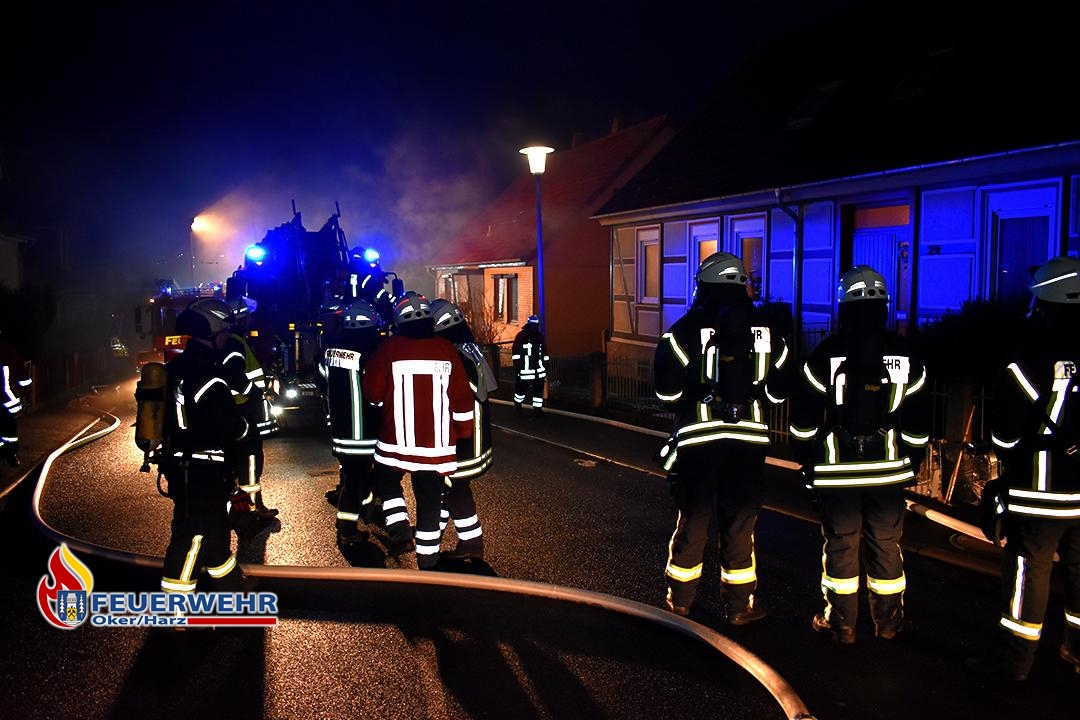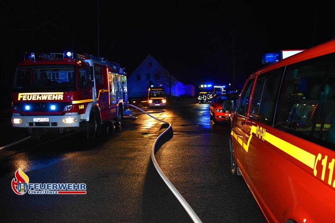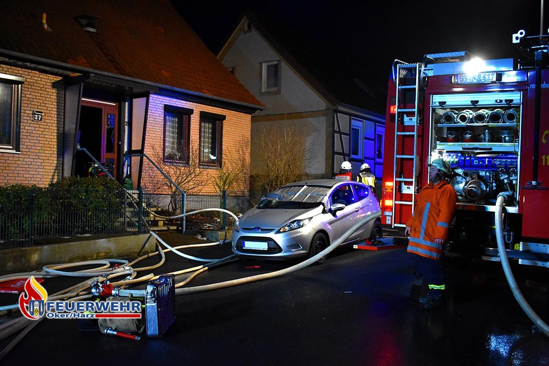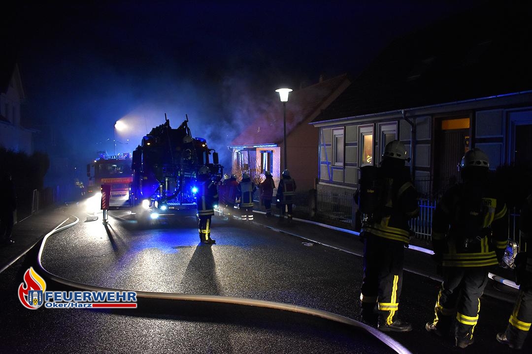 Gegen 5:30 Uhr ertönten die Okeraner Meldeempfänger und riefen die Kameraden zu einem Zimmerbrand in den Höhlenweg. Nach einer ersten Lageerkundung war eine starke Verrauchung im ersten Obergeschoss des Hauses zu sehen. Außerdem galt eine Frau als vermisst. Daher entschied sich der stellv. Ortsbrandmeister Florian Rowold für einen zweiten Alarm der Feuerwehr Oker mittels der Sirene. Zeitgleich wurde auch die Feuerwehr Goslar nachgefordert.