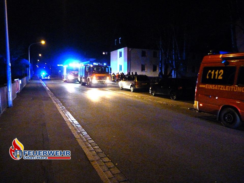 Kurz nachdem die Einsatzabteilung ihren wöchentlichen Dienstabend beendet hatten, ertönten die Alarmempfänger. Da viele Kameraden noch in der Feuerwache waren dauerte das Ausrücken der drei Okeraner Löschfahrzeuge nicht sehr lange.