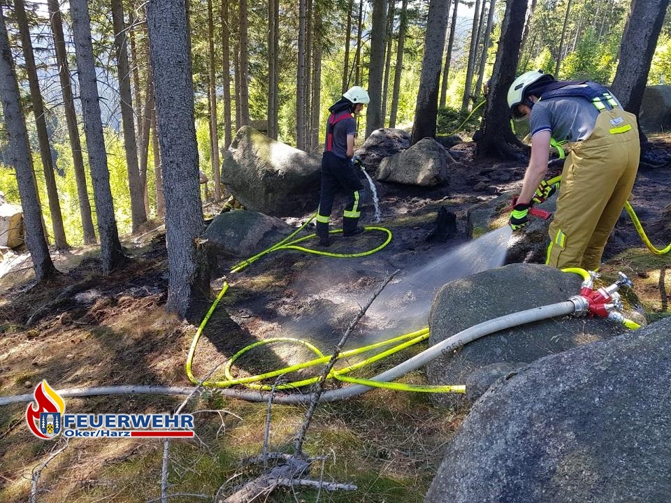 Mit einer funktionierenden Wasserversorgung im Wald war das eigentliche Feuer durch die Kameraden der Feuerwehr Bad Harzburg schnell gelöscht. Um sicher zu gehen, dass sich das Feuer nicht wieder von selbst entzündete folgten noch umfangreiche Nachlöscharbeiten.