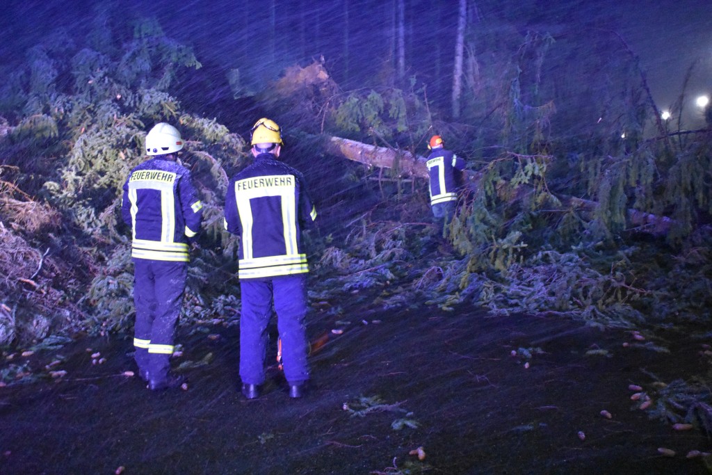 Schon auf dem Weg zur Einsatzstelle erinnerten sich die Einsatzkräfte an Sturmtief Friederike im Januar des vergangenen Jahres. Denn dort waren nur wenige Meter unterhalb der diesmaligen Einsatzstelle bereits über 25 Bäume umgestürzt. Aufgrund des anhaltenden Orkans konnten die Bäume damals nicht sofort entfernt werden ohne dass sich eine Einsatzkraft in Lebensgefahr begab.