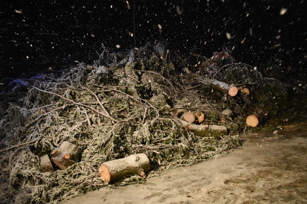 Eine kräftige Böe von Sturmtief Eberhard hat gleich mehrere Fichten am Kutscherweg in Oker entwurzelt. Die Bäume fielen quer über die Fahrbahn bis auf die angrenzenden Grundstücke. Da der Wind nachgelassen hatte entschied Einsatzleiter Hans-Jürgen Bothe, dass die Bäume von der Feuerwehr beseitigt werden. Im Hinterkopf auch immer den Gedanken, dass die versperrte Straße für die Anwohner des Kutscherweges und der Straße Am Kirschenbrink der einzige Rettungsweg ist. Erschwert wurden die Arbeiten durch den einsetzenden Schneefall. Nach knapp 1 1/2 Stunden waren alle Fichten zerkleinert und die Straße geräumt. Für die Feuerwehr aber noch nicht das Ende des Einsatzes, denn die genutzten Kettensägen mussten noch gereinigt und getrocknet werden damit sie sofort für den nächsten Einsatz zur Verfügung stehen.