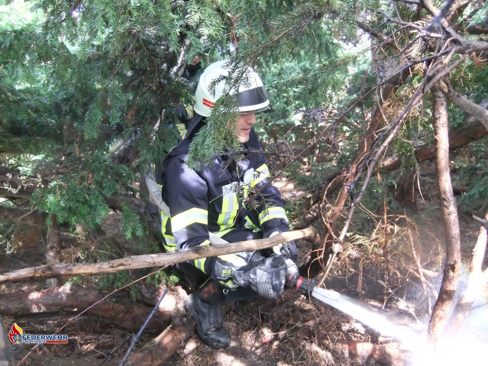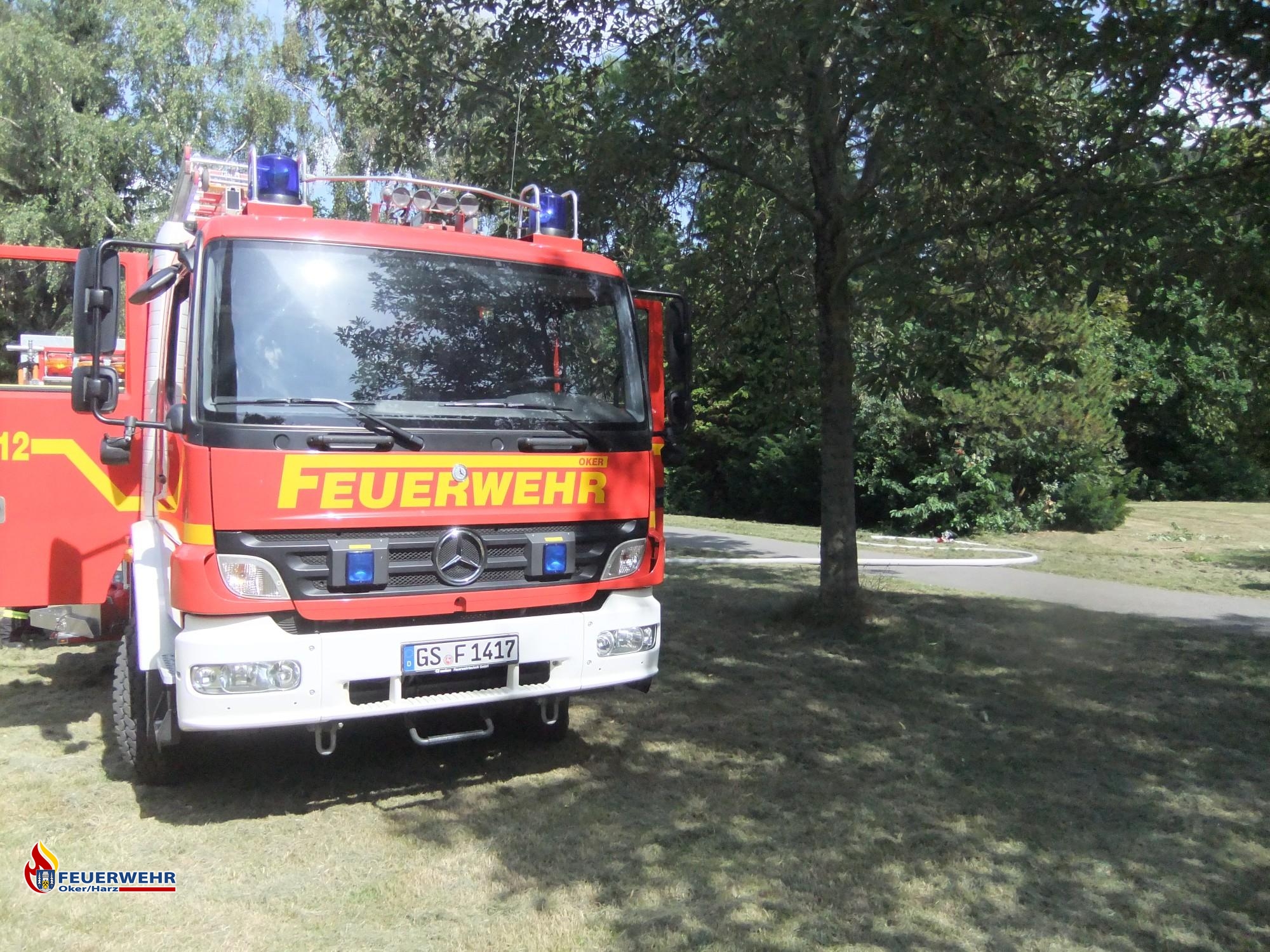 Im Stadtpark Oker geriet am Donnerstagnachmittag ein größerer Baum in Brand. Die alarmierte Feuerwehr Oker konnte das Feuer schnell auf den brennenden Baum beschränken. Um an alle Glutnester im Boden heranzukommen mussten einige Äste des Baumes mit der Kettensäge entfernt werden. Nach zehn Minuten war das Feuer mit knapp 1200l Wasser gelöscht.