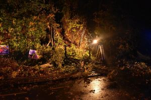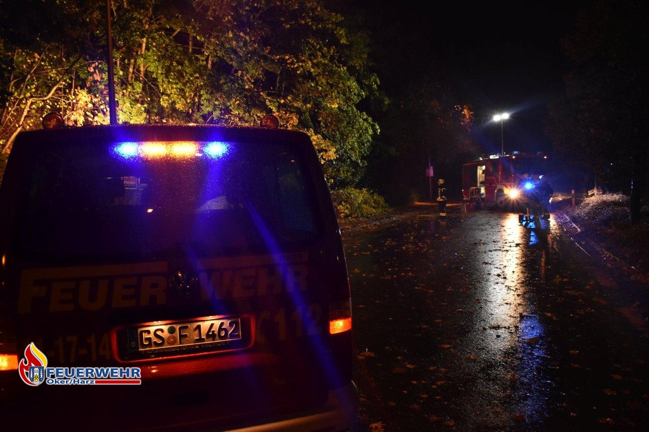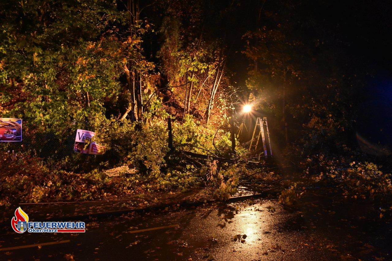Die Vorboten des heranziehenden Sturmtiefs Mortimer entwurzelten einen Baum auf dem Gelände des Sportplatzes am Adenberg. Beim Fall beschädigte der Baum noch weitere Bäume, so dass diese teilweise bereits auf die L501 / Harzburger Straße stürzten.