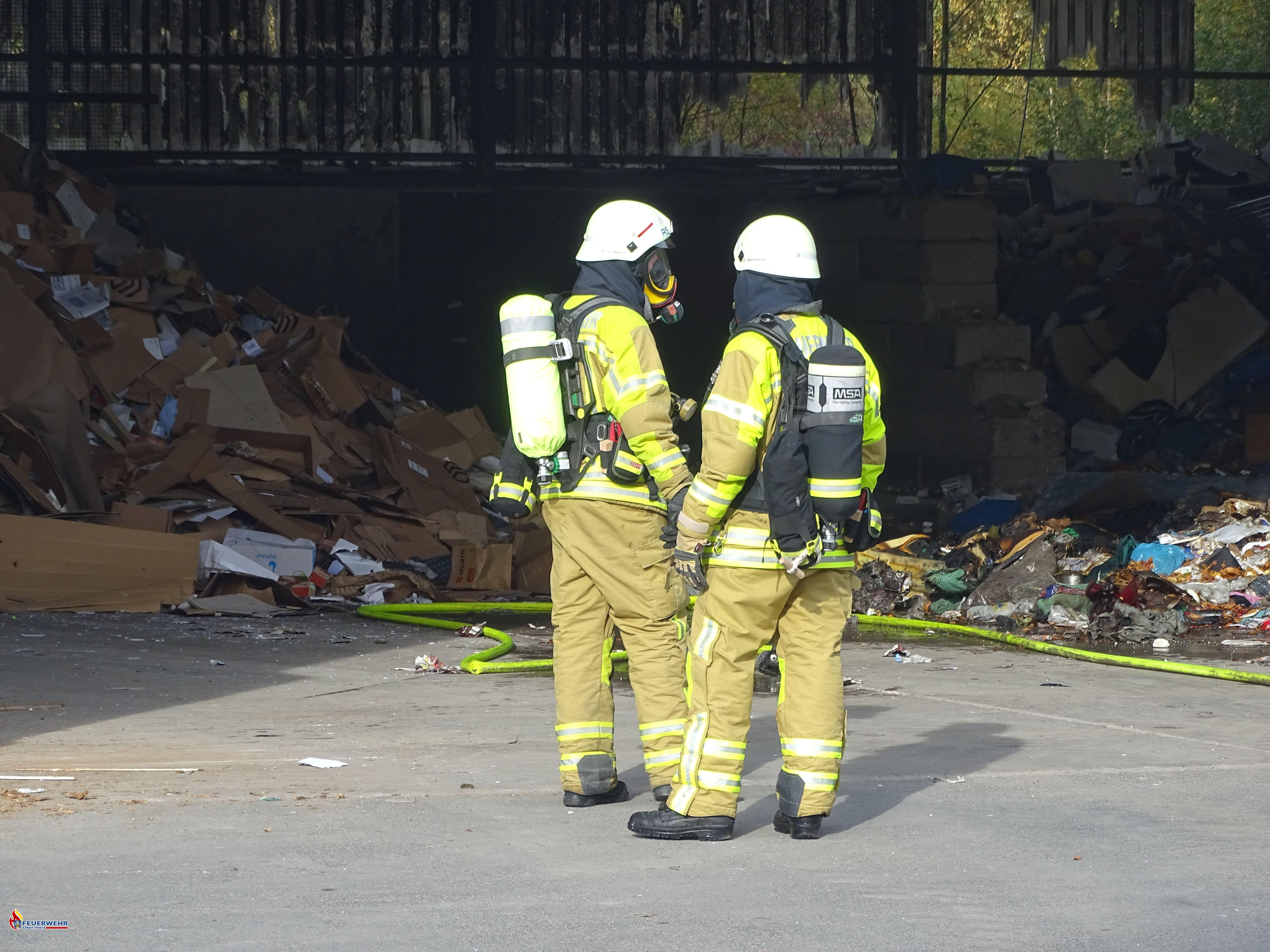 Gemeinsam mit den Feuerwehren aus Bad Harzburg und Harlingerode wurden wir am 22. Oktober um 13.42 Uhr zu einem Entsorgungsbetrieb an der Ortsgrenze zu Harlingerode gerufen. In einer Halle lagernder Sperrmüll hatte Feuer gefangen.