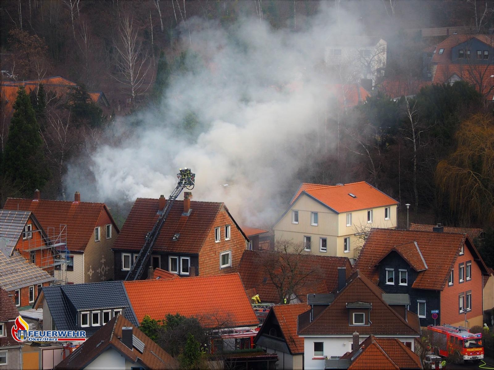 Eine große Rauchwolke stieg Donnerstagmittag über Oker empor. Um 12.34 Uhr wurden die Feuerwehren aus Oker und Goslar, sowie die Atemschutzlogistik aus Hahndorf und der Kreisbrandmeister zu einem Gebäudefeuer mit Menschenleben in Gefahr alarmiert. Bereits auf der Anfahrt zum Feuerwehrhaus war die Rauchsäule für die Einsatzkräfte aus Oker und teilweise auch aus Goslar gut sichtbar und ließ schlimmes vermuten.