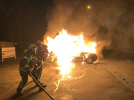 Bereits aus weiter Entfernung konnten die anfahrenden Kräfte den Flammenschein sehen. Nachdem sich die platzenden Reifen bei den zuerst eintreffenden Kräften gehör verschafften, machten sich zwei Kameraden daran das Auto mit Wasser herab zu kühlen. Ein weiterer Trupp bereitete den Einsatz von Schaum vor.