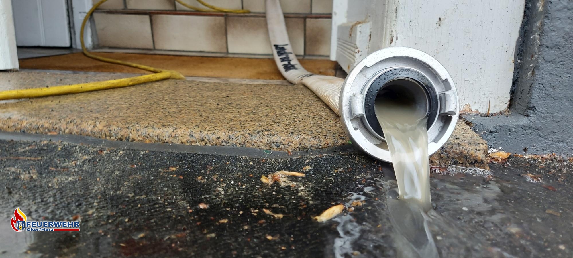Ein weiterer Wasserschaden, der durch einen technischen Defekt verursacht wurde, beschäftigte die Feuerwehr Oker an diesem Sonntagabend. Der Schaden trat im ersten Obergeschoss eines großen Wohngebäudes auf. Über längere Zeit traten dort große Mengen Wasser aus und suchten sich den Weg ins Erdgeschoss. Mit dem Wassersauger wurde das Wasser aus dem Gebäude entfernt. Da sich die Lehmdecken bereits mit Wasser so stark vollgesaugt hatten, mussten Ablauflöcher in die Decke geschnitten werden, um ein Herunterfallen vorerst zu vermeiden. An dem Gebäude dürfte ein erheblicher Sachschaden entstanden sein.