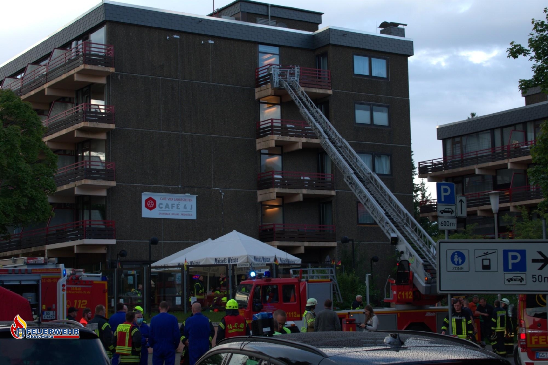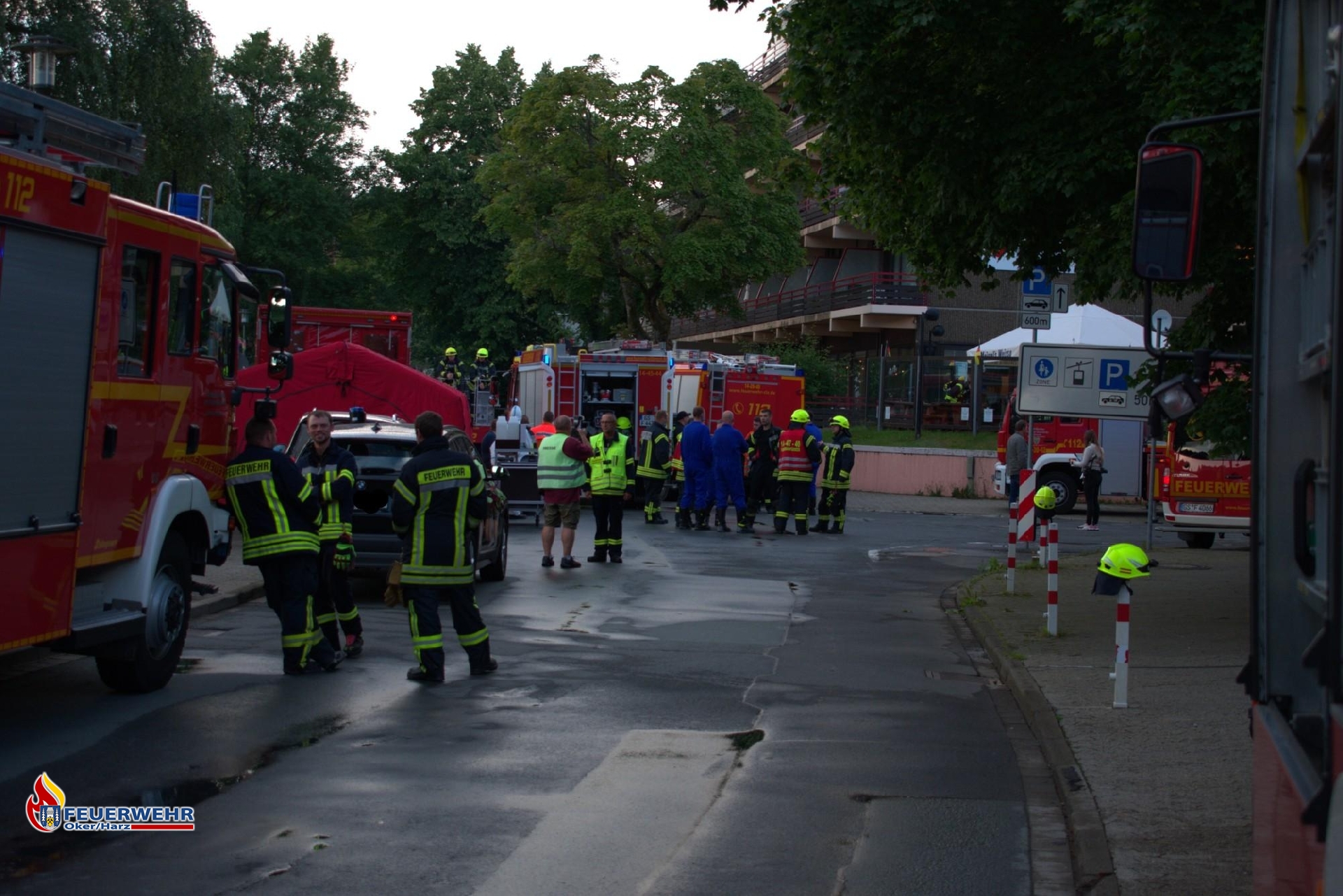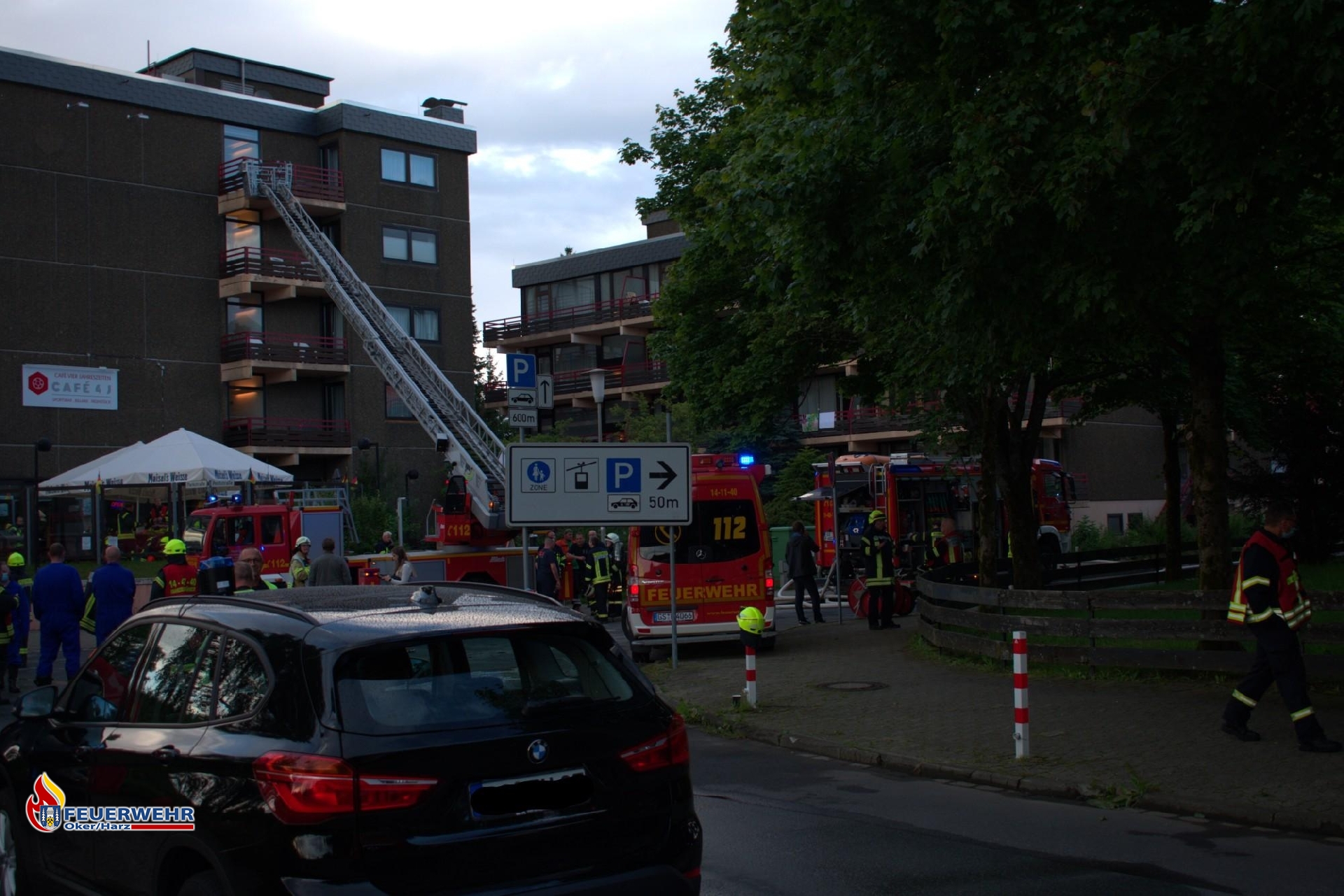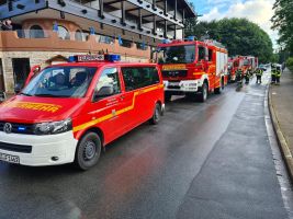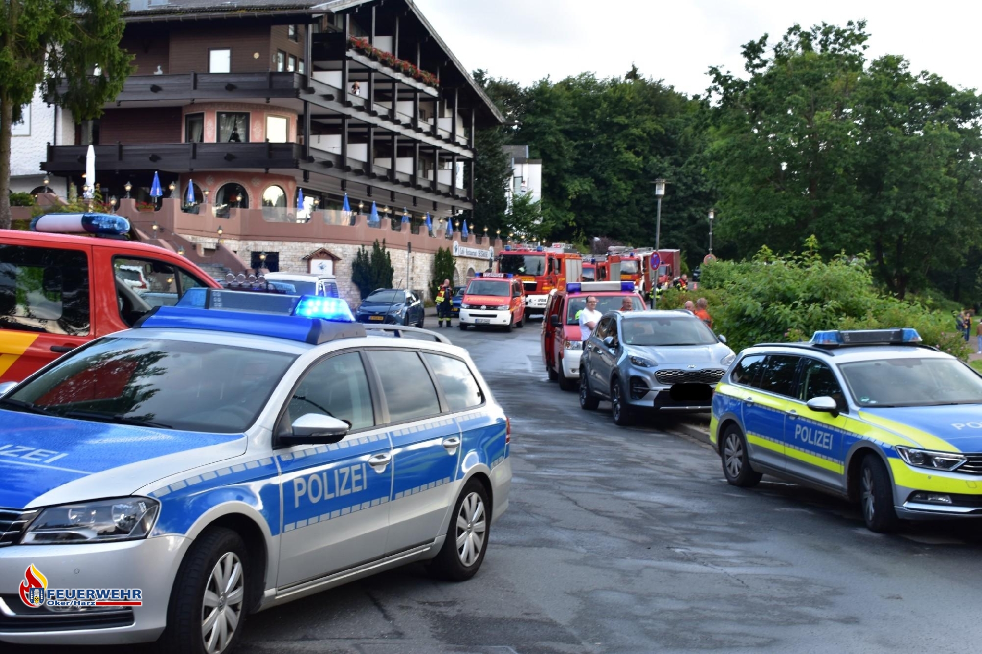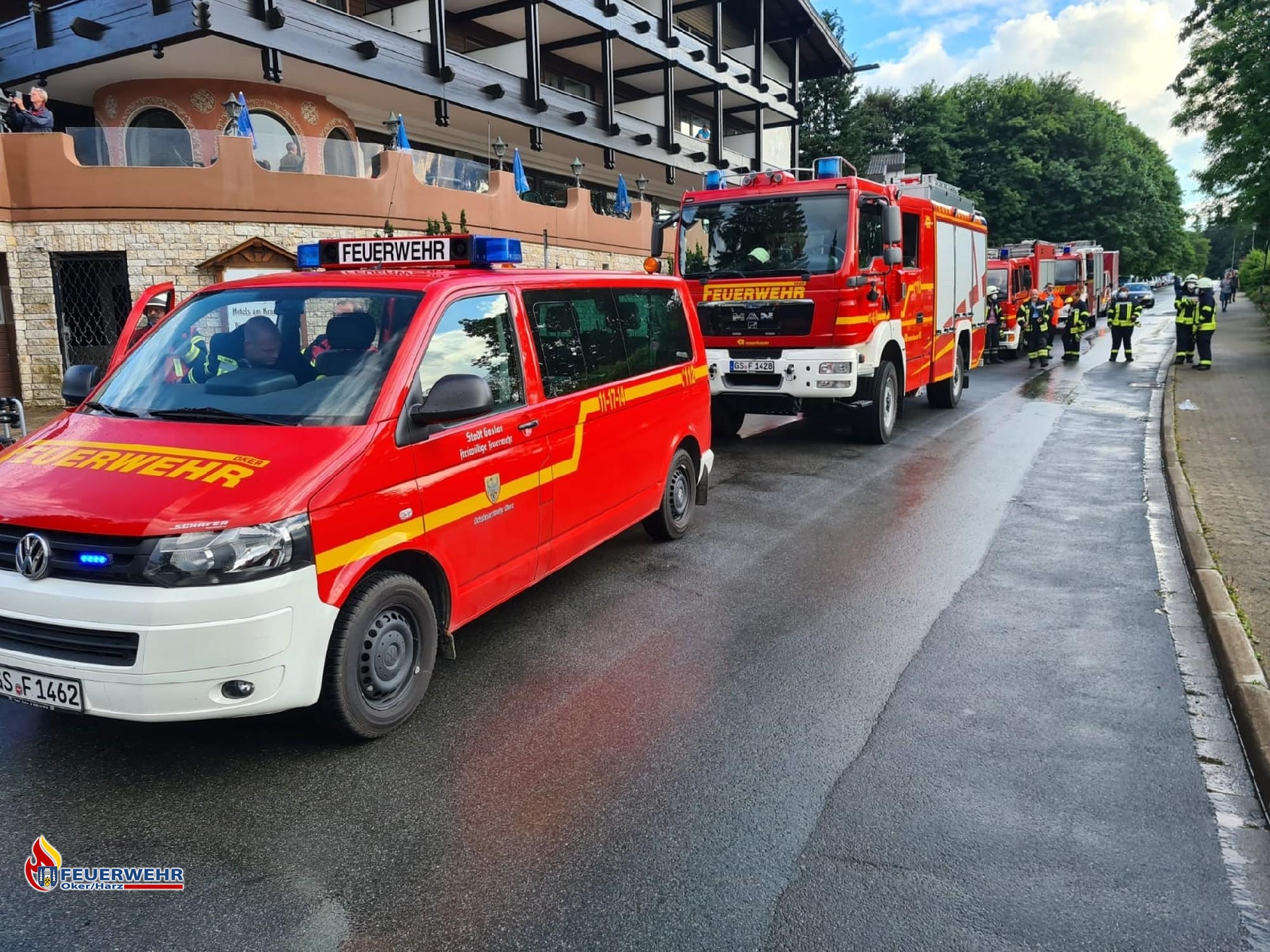 In einem Hotelgebäude in Hahnenklee-Bockswiese kam es am 05.08.2021 kurz nach 17 Uhr zu einem Kellerbrand. Zunächst löste die Brandmeldeanlage des Hotelkomplexes aus, woraufhin die zuständige Ortsfeuerwehr alarmiert wurde. Die ersten Einsatzkräfte der Feuerwehr Hahnenklee-Bockswiese nahmen eine starke Rauchentwicklung war. Daraufhin wurde auch die Feuerwehr Clausthal-Zellerfeld mit ihrem Löschzug alarmiert. Bei weiterer Erkundung im Gebäude wurde vermehrt Rauch festgestellt, weshalb Stadtbrandmeister Christian Hellmeier die Feuerwehr Goslar nachalarmieren ließ und die Einsatzleitung übernahm. Nachdem insgesamt drei Drehleitern, aus Hahnenklee-Bockswiese, Clausthal-Zellerfeld und Goslar vor Ort waren, gab es neben den Treppen nun auch Rettungswege über die Drehleitern, um 60 Personen aus dem Gebäude zu evakuieren.