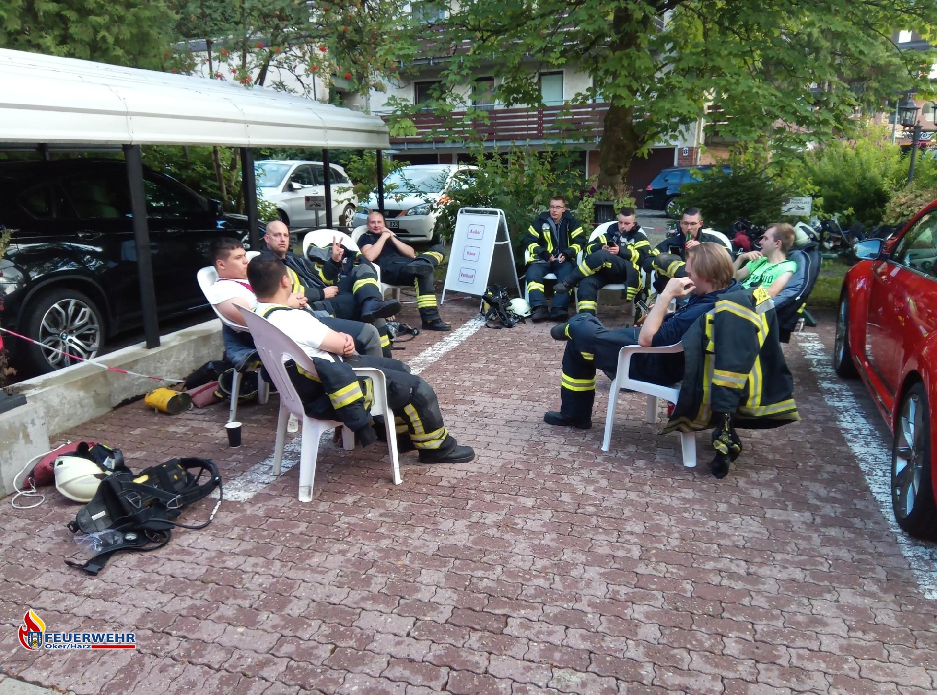 Nachdem wir uns angemeldet hatten, warteten wir auf unseren Einsatz. Nach zirka 90 Minuten wurden wir nicht mehr benötigt, da das Gebäude bereits komplett besichtigt und belüftet wurde. Somit war für uns der Einsatz um kurz nach 20 Uhr beendet und die Atemschutzgeräteträger meldeten sich wieder ab und wir fuhren wieder zurück zur Wache.