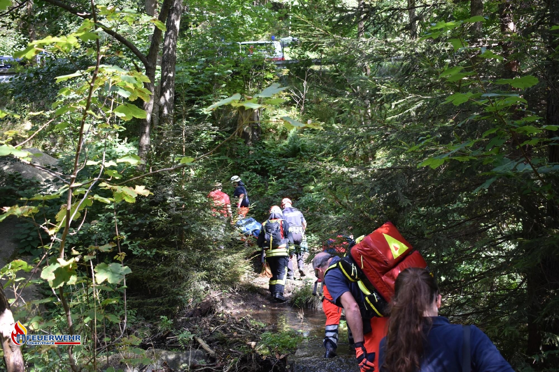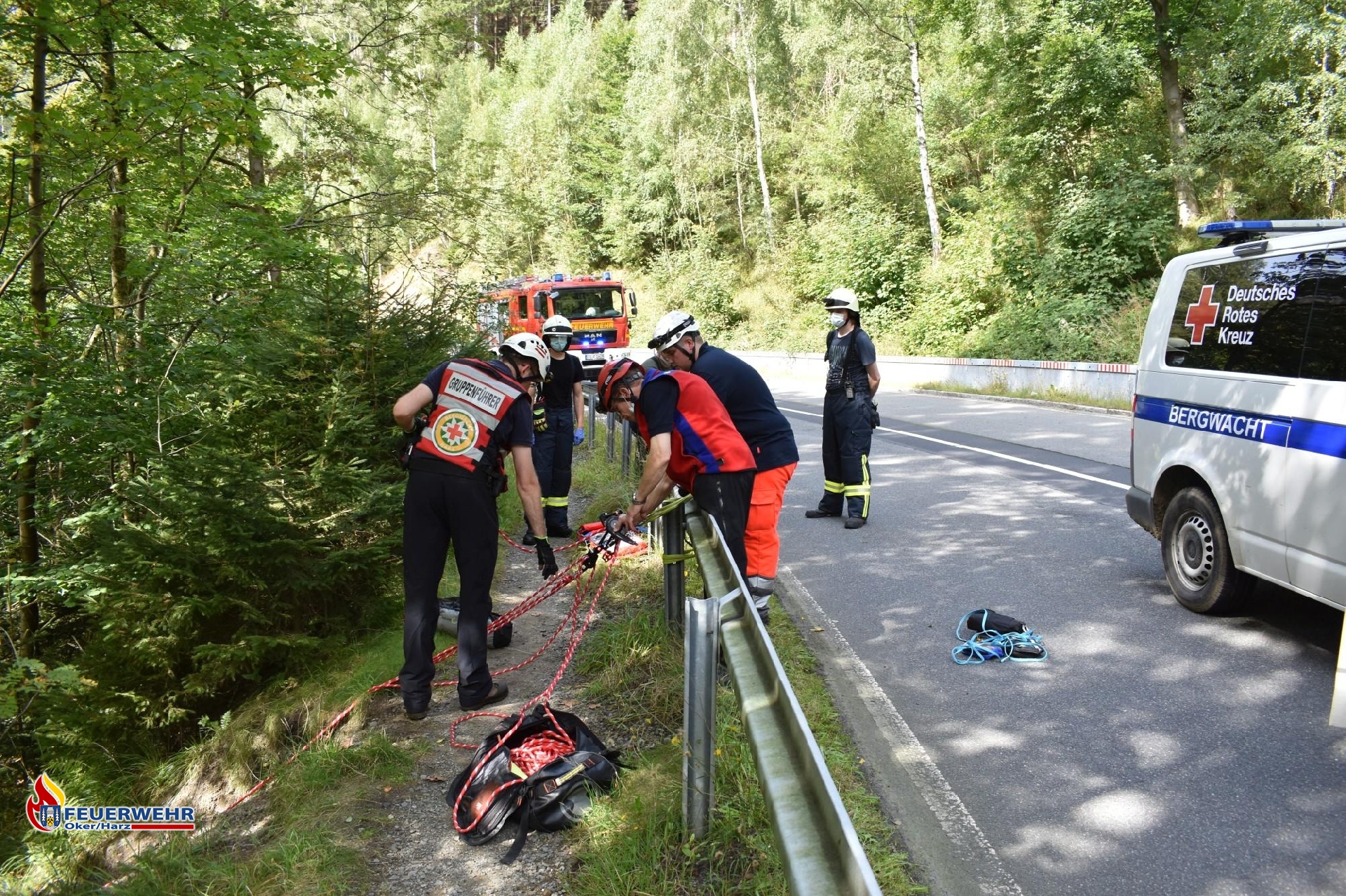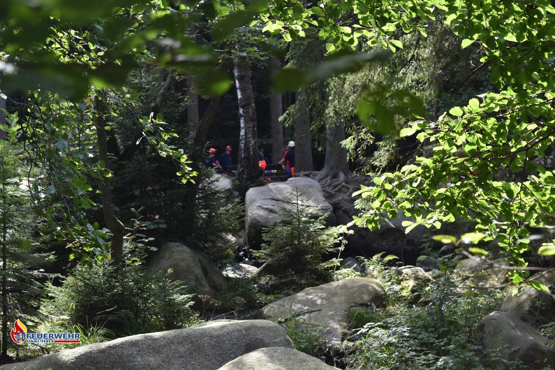 Während sich das Löschfahrzeug noch bei dem Einsatz „Ausgelöster Heimrauchmelder“ in der Straße „Okertal“ befand, informierte die Leitstelle gegen 13.00 Uhr über einen weiteren Einsatz im Okertal. Auf der Verlobungsinsel, eine Felsgruppe im Flusslauf der Oker, war ein Mann schwer gestürzt. Das Löschfahrzeug machte sich unverzüglich auf den Weg und war in kurzer Zeit am Einsatzort angekommen. Von der Bundesstraße aus gibt es keinen festen, direkten Weg zur Inselgruppe, so dass sich Gruppenführer und Angriffstrupp mit Leinen und Notfallrucksack zu Fuß auf den Weg über die Oker machten. Am Patienten angekommen, kümmerte sich Gruppenführer Christian Müller, der hauptberuflich im Rettungsdienst arbeitet, mit Unterstützung des Angriffstrupps um die Versorgung des Patienten. Nach der Erstversorgung trafen auch der Rettungsdienst sowie die Bergwachten aus Langelsheim und Clausthal-Zellerfeld an der Einsatzstelle ein. Gemeinsam wurde die Rettung des Mannes beraten und die entsprechenden Vorbereitungen getroffen. Für die Sperrung der viel befahrenen Bundesstraße rückten drei Einsatzkräfte der Feuerwehr Oker mit dem Mannschaftstransportwagen nach. Der Patient wurde anschließend schonend gelagert und mithilfe einer Gebirgstrage und eines Flaschenzugsystems bis zum Rettungswagen befördert, der ihn in ein Krankenhaus brachte. Nach rund 1,5 Stunden war der Einsatz beendet und das Material wieder auf den Fahrzeugen verlastet.