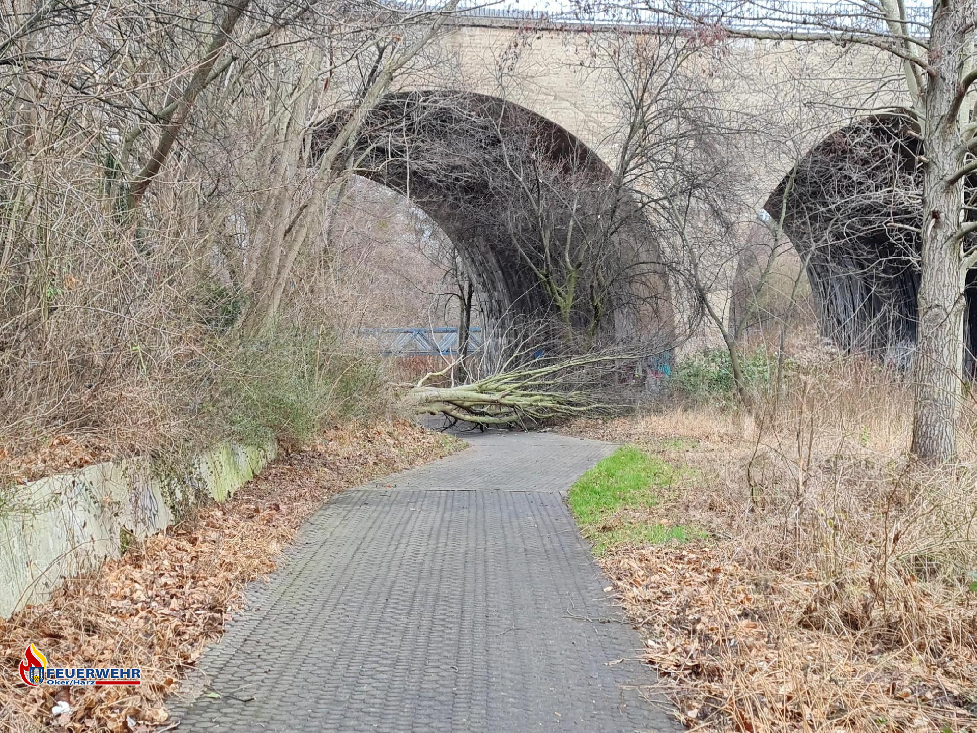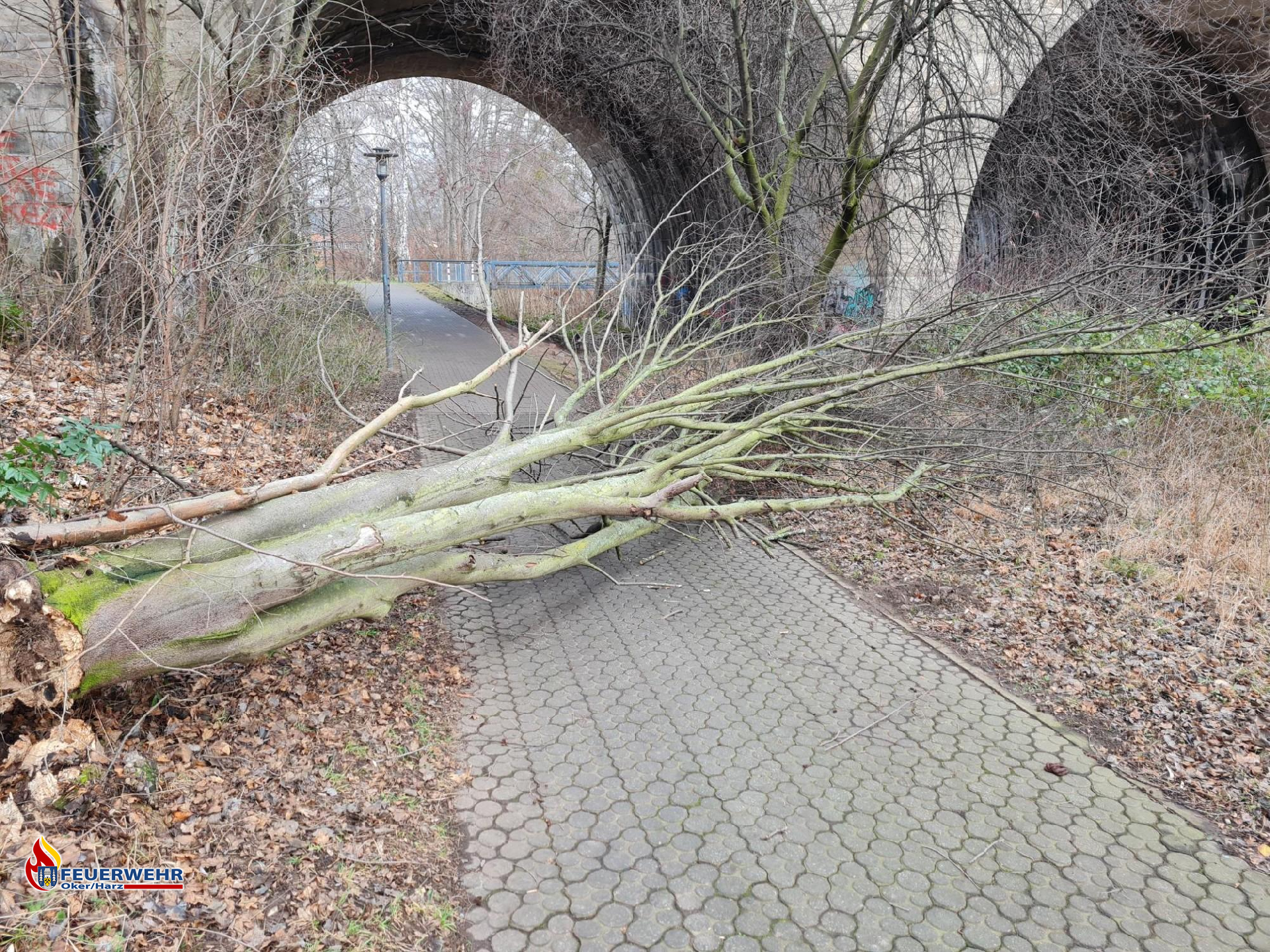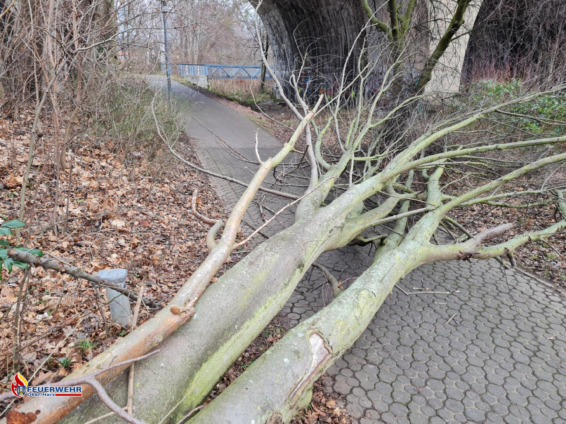 Unser Ortsbrandmeister wurde am Samstagmorgen an die Okerpromenade alarmiert. Dort sollte ein Baum durch den starken Wind quer über einen Fußgängerweg und in die Oker gefallen sein, sodass sich der Fluss aufstaute. Nach kurzer Begutachtung des Ortsbrandmeisters stellte er fest, dass sich der Baum nur auf dem Fußgängerweg befand. Somit war dies kein Einsatz für die Feuerwehr und der Bauhof wurde informiert.