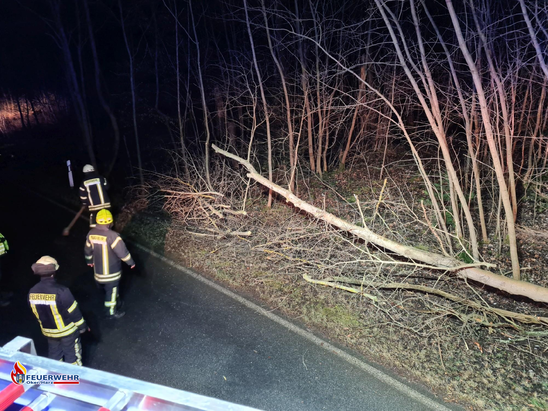Freitagnacht um 23:43 Uhr, wurden die Kameraden zu einem weiteren Sturmschaden alarmiert. Dieses Mal lag im Waldstück der L501, Oker Richtung Göttingerode, ein Baum am Rand der Fahrbahn. Erneut machte ein Kamerad sich mit Schnittschutzhose und Motorsäge einsatzbereit. Ein weiterer Kamerad kümmerte sich um die Verkehrssicherung, während die restlichen Einsatzkräfte den Baum am Straßenrand beseitigten. Nach ca. 15 Minuten war der Einsatz beendet.