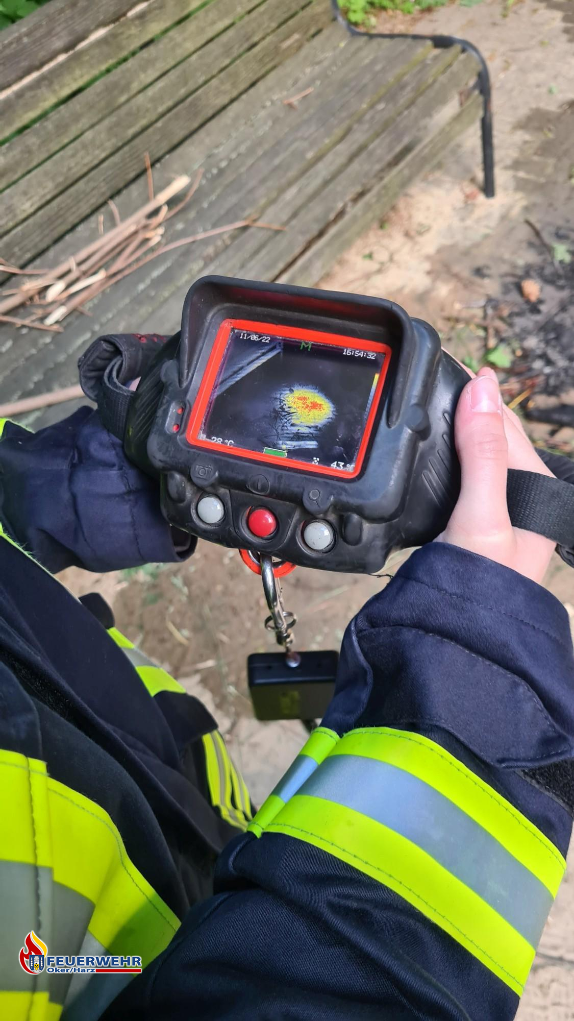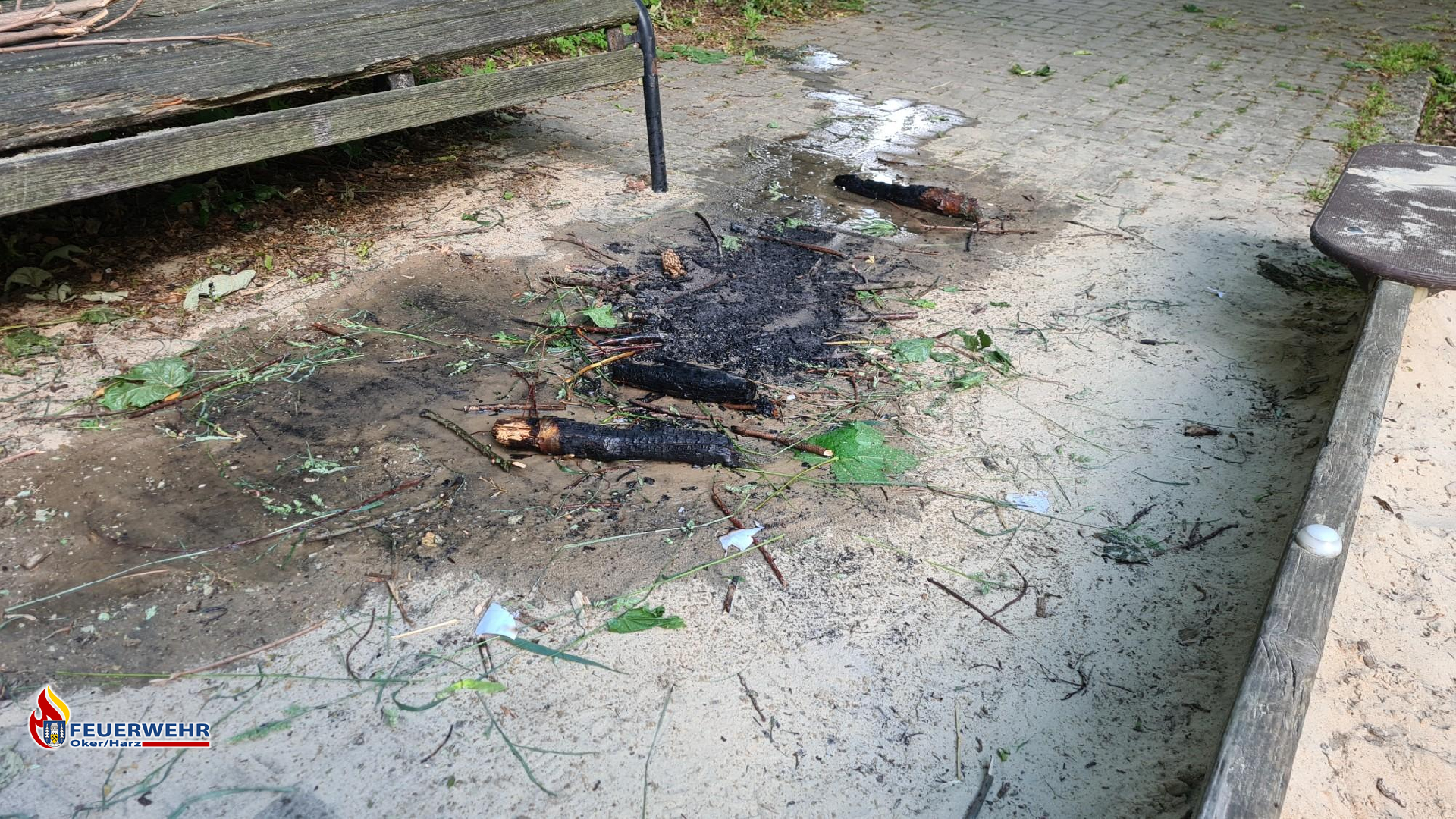 Am Samstagabend, als die Ausbilder der Jugendfeuerwehr aufgrund eines 2-tägigen Ausbildungsseminars die Feuerwache putzten, rief ein Kamerad bei ihnen an und schilderte die Lage vor Ort. Nach kurzer Absprache mit dem Ortsbrandmeister, fuhren sie zu viert in den Stadtstieg. Dort hatten Jugendliche auf einem Spielplatz mehrere kleine Äste angezündet. Nachbarn hatten das Feuer bereits abgelöscht, sodass wir nur nochmal mit der Wärmebildkamera kontrollierten und das Wasser der Kübelspritze auf der Brandstelle auskippten. Die bereits angeforderte Polizei übernahm nach kurzer Zeit die Einsatzstelle.