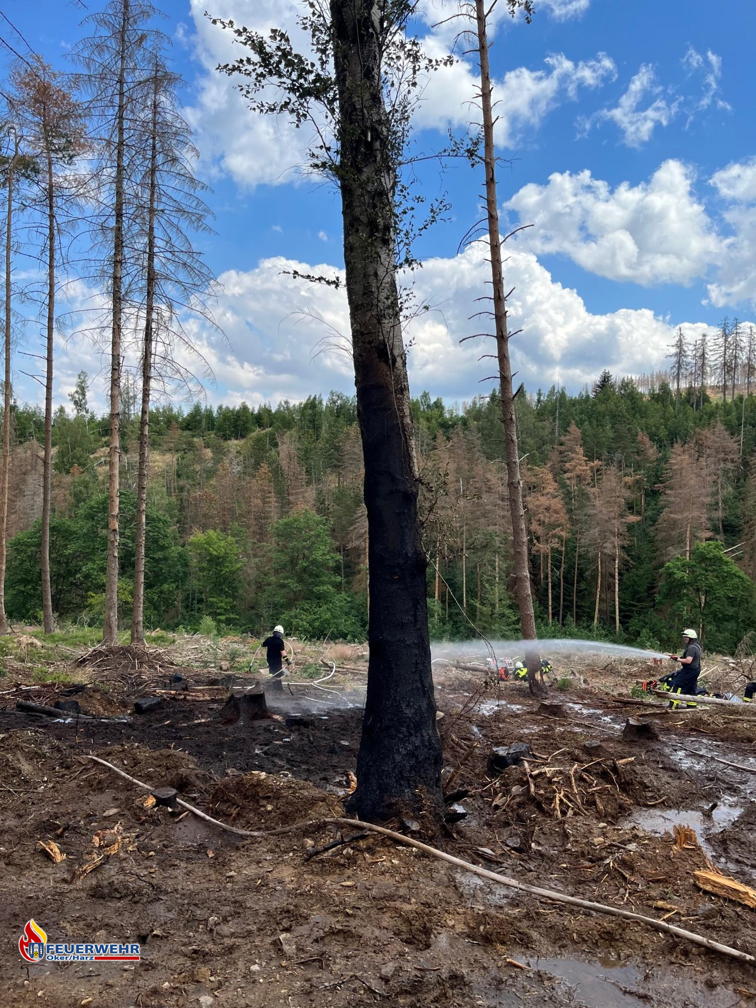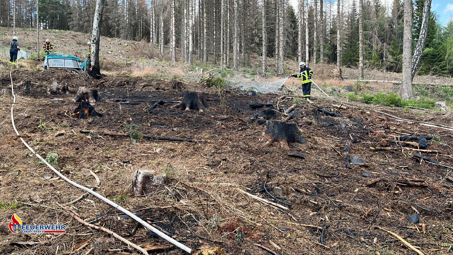 Am Dienstagvormittag wurde um 12:07 Uhr der Wassertransportzug 2 alarmiert. Dieser Zug besteht aus mehreren Tanklöschfahrzeugen aus dem Stadtgebiet. Darunter auch unser Tanklöschfahrzeug mit 3000 Liter Wasser. Im Dörpketal angekommen, fuhren wir rückwärts in den Wald bis zu den Goslarer Fahrzeugen und gaben unser Wasser ab. Die Mannschaft nahm sich derweil die Waldbrandausrüstung, Schaufeln, Äxte sowie Feuerpatschen mit zur Brandstelle und unterstützte die Kräfte aus Goslar. Mit vereinten Kräften wurde der Boden geöffnet und mit Wasser alles durchgespült. Um tiefer ins Innere der Erde zu gelangen, wurde mithilfe der Löschlanze jeder Baumstumpf gewässert. Gegen 14 Uhr war der Einsatz beendet und wir rückten ein und säuberten die Geräte.