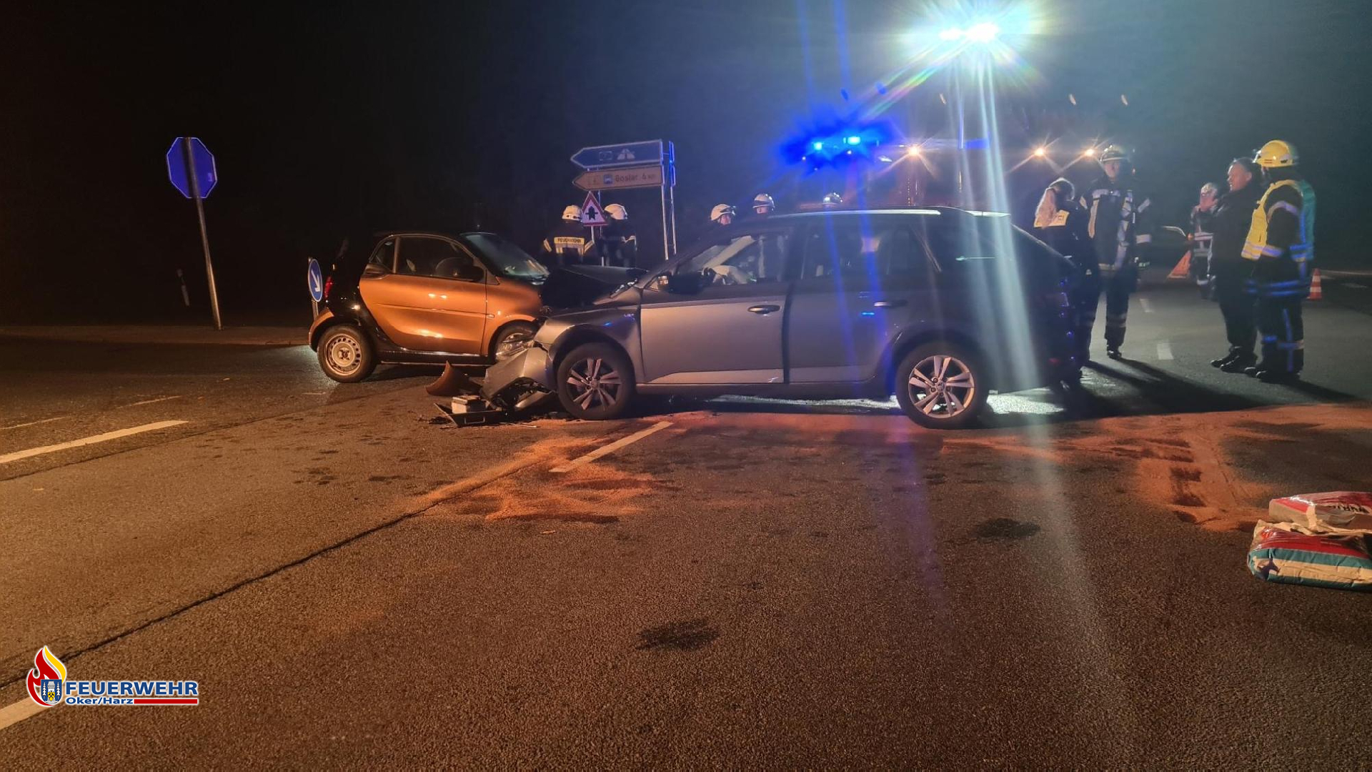 Am Montag, den 14.11. alarmierte uns die Leitstelle um 18:04 Uhr auf die L518 zwischen Vienenburg und Oker. Auf einer Kreuzung gab es einen Verkehrsunfall, weshalb Betriebsstoffe der Fahrzeuge auf die Straße austrat.