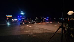 Da auch mittlerweile das zweite Löschfahrzeug eingetroffen war, baute die Besatzung ebenfalls einen Lichtmast von der anderen Seite aus auf und streute das Öl mit Bindemittel ab. Die Fahrzeugteile, die sich beim Unfall auf die ganze Straße verteilten und das verstreute Bindemittel wurden zusammengefegt und entsorgt.