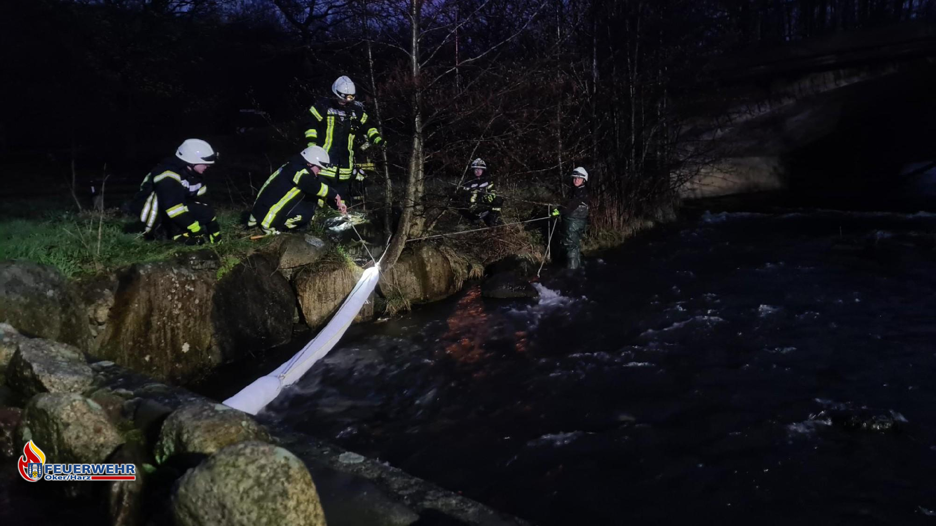 Als wir die Einsatzmittel erhielten, konnten wir die Ölsperren in der Oker befestigen und das Ölbindemittel verteilen. Die Einsatzstelle wird am heutigen Sonntag durch die untere Wasserbehörde der Stadt Goslar kontrolliert, um festzustellen, ob sich noch Öl in der Oker befindet. Durch das schnelle Eingreifen entstand keine Gefahr für die Umwelt und die Oker.