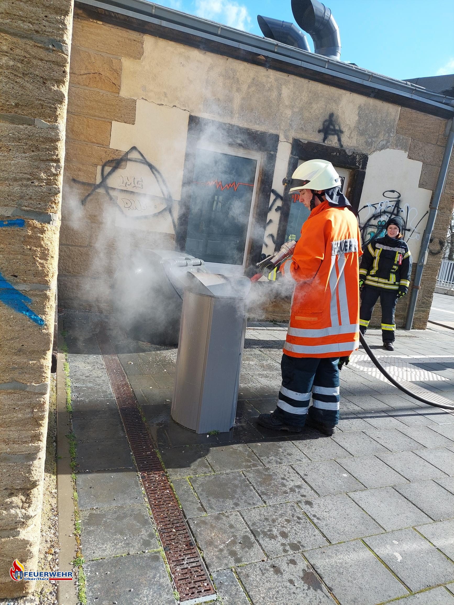 Am 03.04.2023 gegen 10:30 Uhr, teilte uns die Leitstelle über Funk mit, dass ein Mülleimer am Bahnhof Oker brennen soll.
