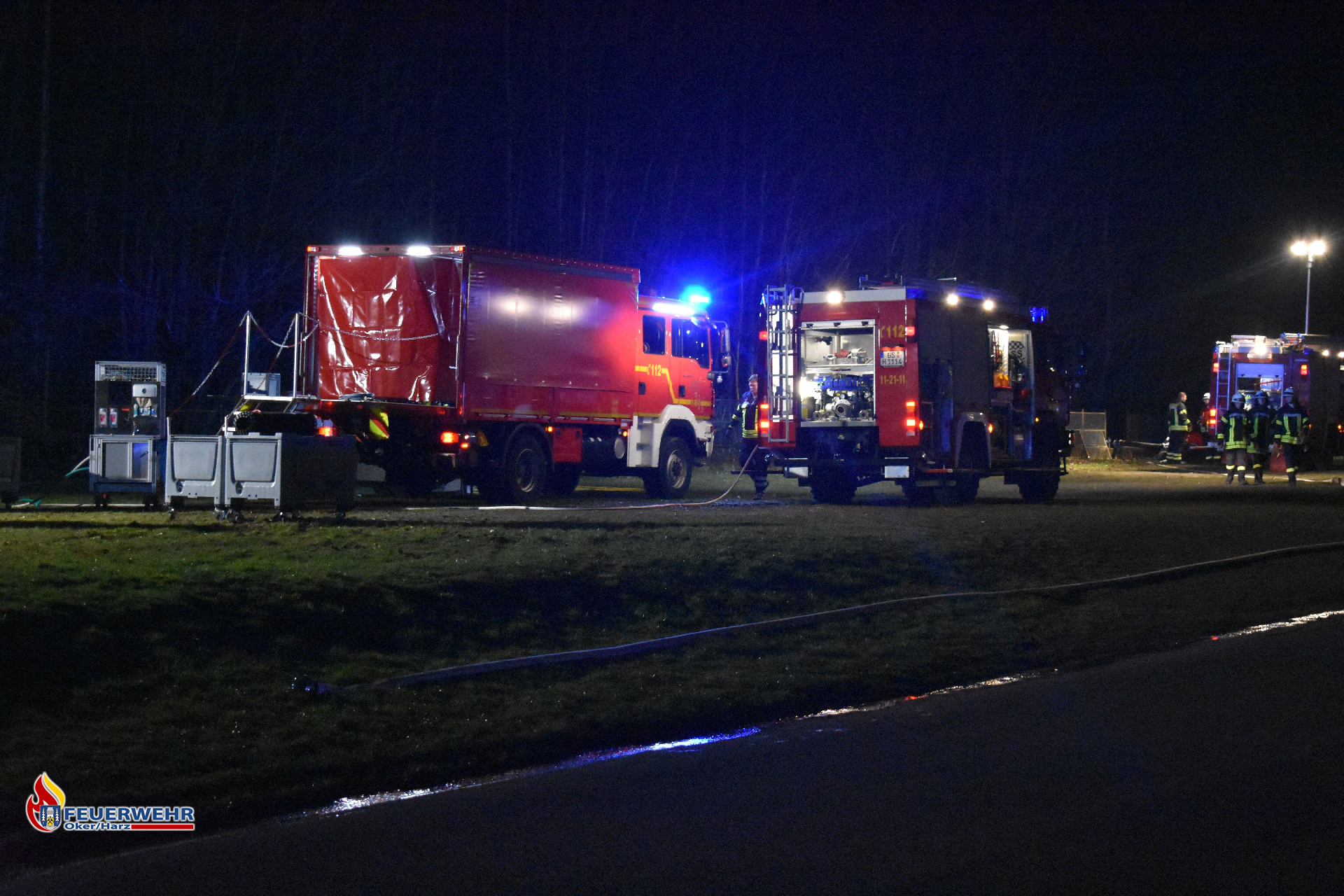 Durch Kontamination der benutzten Schläuche, wurde die Feuerwehrtechnische Zentrale dazugezogen, sodass wir noch an der Einsatzstelle die Fahrzeuge wieder mit Schläuchen bestücken konnten.