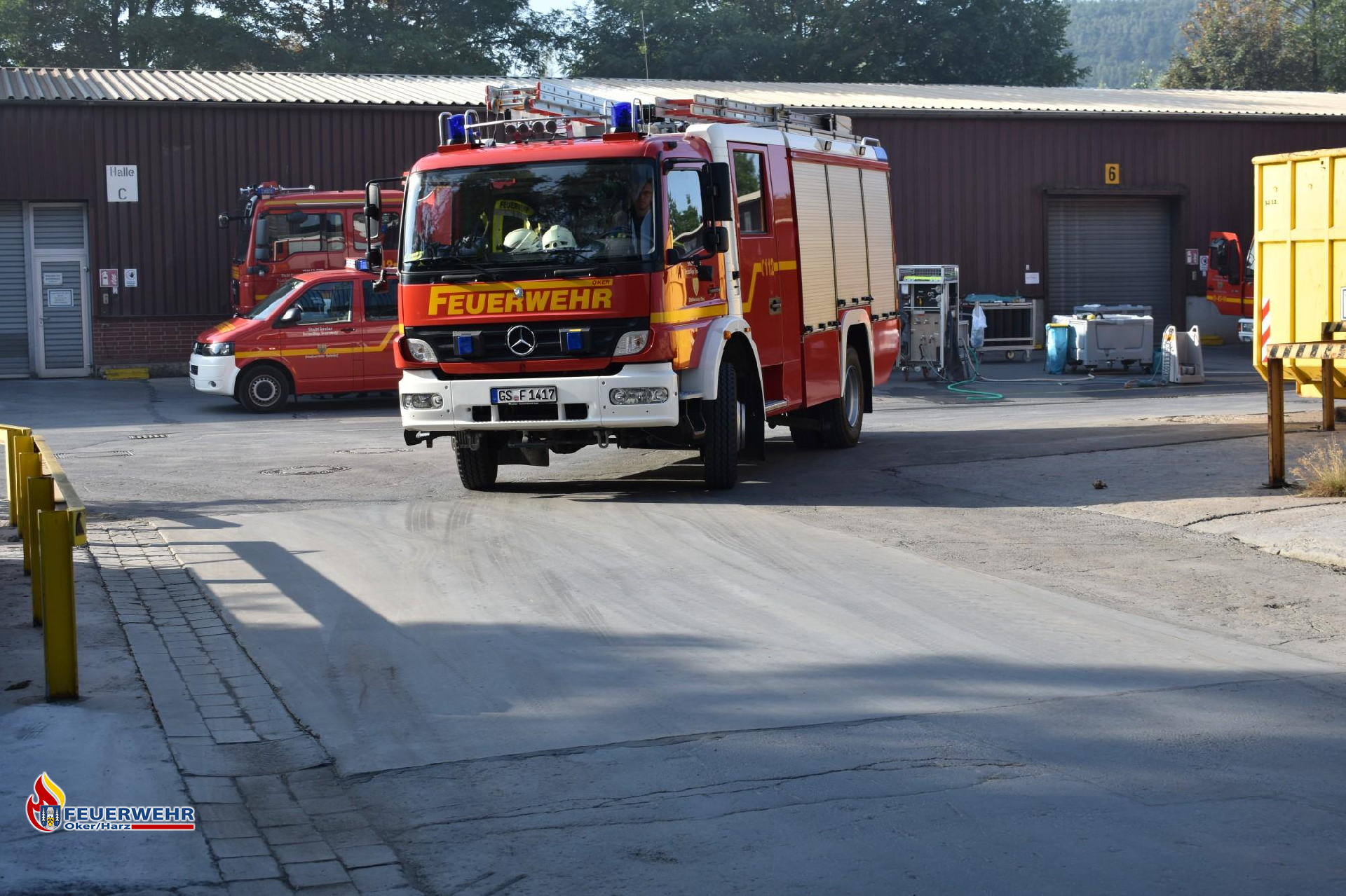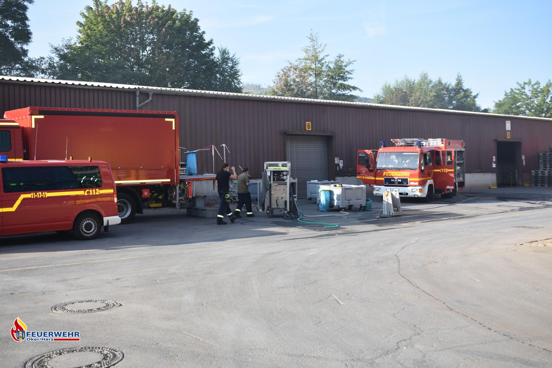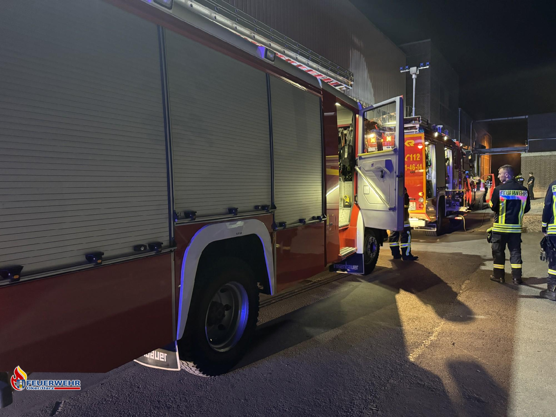 Am 07.08.2024 wurden wir um 03:45 Uhr zu einem Schwelbrand in einem metallverarbeitenden Betrieb zwischen Oker und Harlingerode alarmiert. Gemeinsam mit den Kräften aus Harlingerode und Bad Harzburg gingen wir in Bereitstellung, während die Besatzung des ersteintreffenden Löschfahrzeuges eine erste Erkundung unter Atemschutz durchführte. Dort stellten sie fest, dass drei BigBags mit Zinkoxid schwelten. Anschließend begann der erste Trupp mit dem P250-Anhänger die Brandbekämpfung. Währenddessen fungierte der zweite Trupp als Sicherheitstrupp, im weiteren Einsatzverlauf übernahmen das die Harlingeroder Kräfte. Daraufhin begannen wir mit einem Gabelstapler der Firma, die Halle freizuräumen, um an das schwelende Material zu kommen. Dabei wurden nicht betroffene BigBags mithilfe eines Hubwagens aus dem betroffenen Bereich gefahren und anschließend mit dem Gabelstapler aus der Halle entfernt. Gegen 06:30 Uhr traf das THW ein, um die beschädigten und schwelenden BigBags aus der Halle zu separieren. Dafür wurde ein Container bereitgestellt, der mit feuchtem Klärschlamm befüllt war, um das Material damit zu vermengen und besser ablöschen zu können. Währenddessen trafen weitere Kräfte der Feuerwehr Wiedelah ein, um den laufenden Einsatz mit weiteren Atemschutzgeräteträgern zu unterstützen. Alle Kräfte aus dem Goslarer Stadtverband durchliefen nach ihrem Einsatz den GW-Hygiene der Feuerwehr Hahndorf, um eine Kontaminationsverschleppung zu vermeiden. Anschließend fuhren die Atemschutzgeräteträger zur weiteren Dekontamination ins Gerätehaus und duschten dort. Danach fuhren sie zum Gerätehaus Goslar, um neue Atemschutztechnik aufzurüsten. Die Werkfeuerwehr Volkswagen Wolfsburg entlüftete im weiteren Verlauf des Einsatzes mit einem Großraumlüfter die Halle um die Sicht zu erleichtern. Gleichzeitig wurde die Bevölkerung in Oker über Lautsprecherdurchsagen angehalten, Fenster und Türen, aufgrund der Geruchsbelästigung, geschlossen zu halten. Das Entfernen des Materials in den Containern erzielte den gewünschten Löscherfolg, sodass die ersten Kräfte die Einsatzstelle verlassen und die Einsatzbereitschaft wiederherstellen konnten. Der Einsatz war nach etwa 10 Stunden beendet, darauf folgte eine gründliche Nachbereitung.