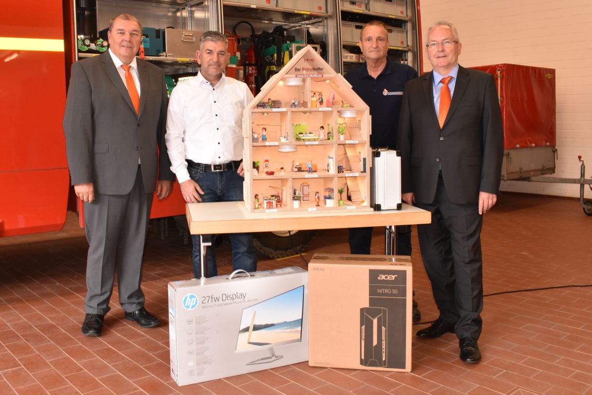 Doch das Rauchsimulationshaus war nicht die einzige Anschaffung für die Feuerwehr Oker. Der Förderverein hat nochmal knapp 1000€ in die Hand genommen und ein modernes Computersystem für das Feuerwehrhaus gespendet. Dieses steht ab sofort allen Führungskräften im Kommandozimmer zur Verfügung. Darüber können Dienste vorbereitet, Mitglieder verwaltet und E-Mails versendet werden. Das Team Öffentlichkeitsarbeit hat nun auch einen zentralen Ort, um Fotos und Presseberichte zu speichern und zu versenden.